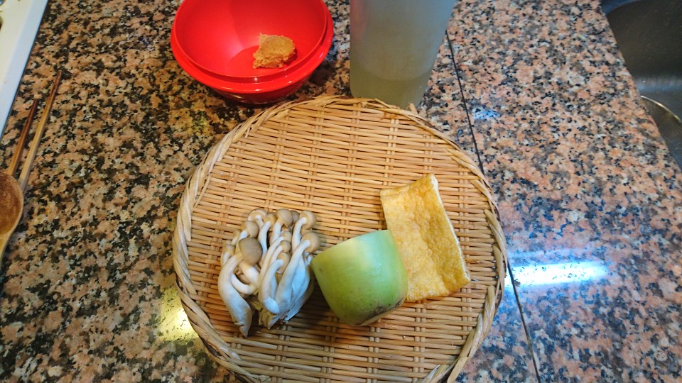 今朝は、大根、しめじ、うすあげの味噌汁です。
