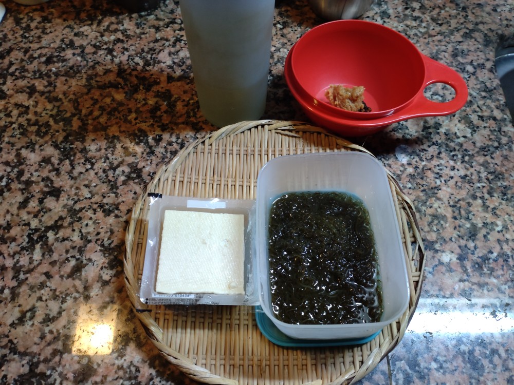 今朝は、ねこ足納豆昆布、木綿豆腐の味噌汁です。
