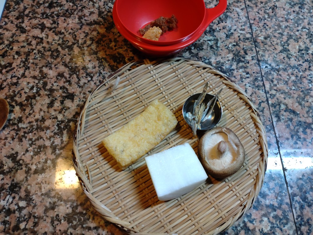 今朝は、大根、生しいたけ、うすあげ、いりこの味噌汁です。