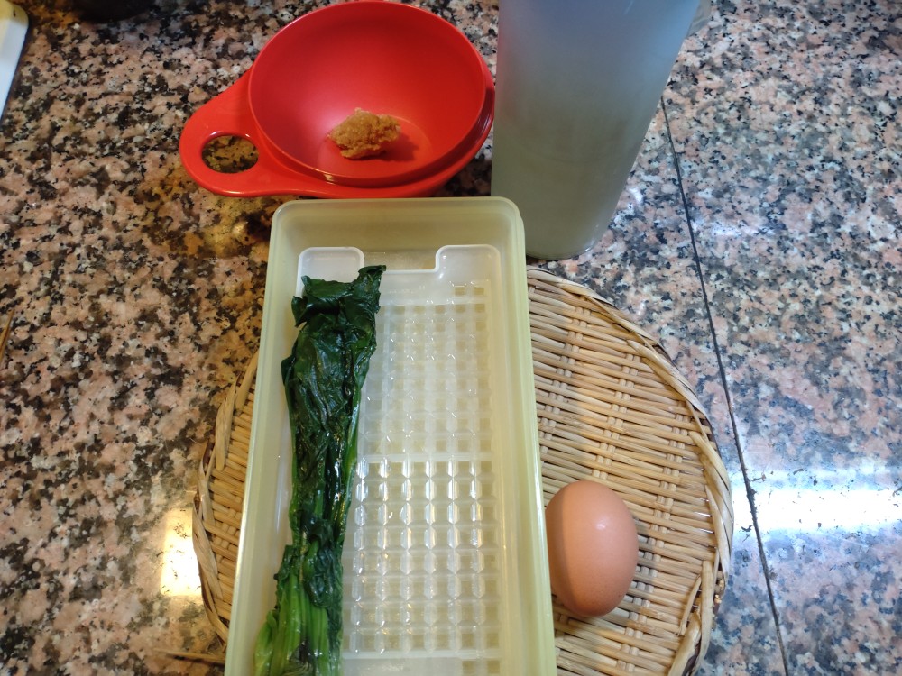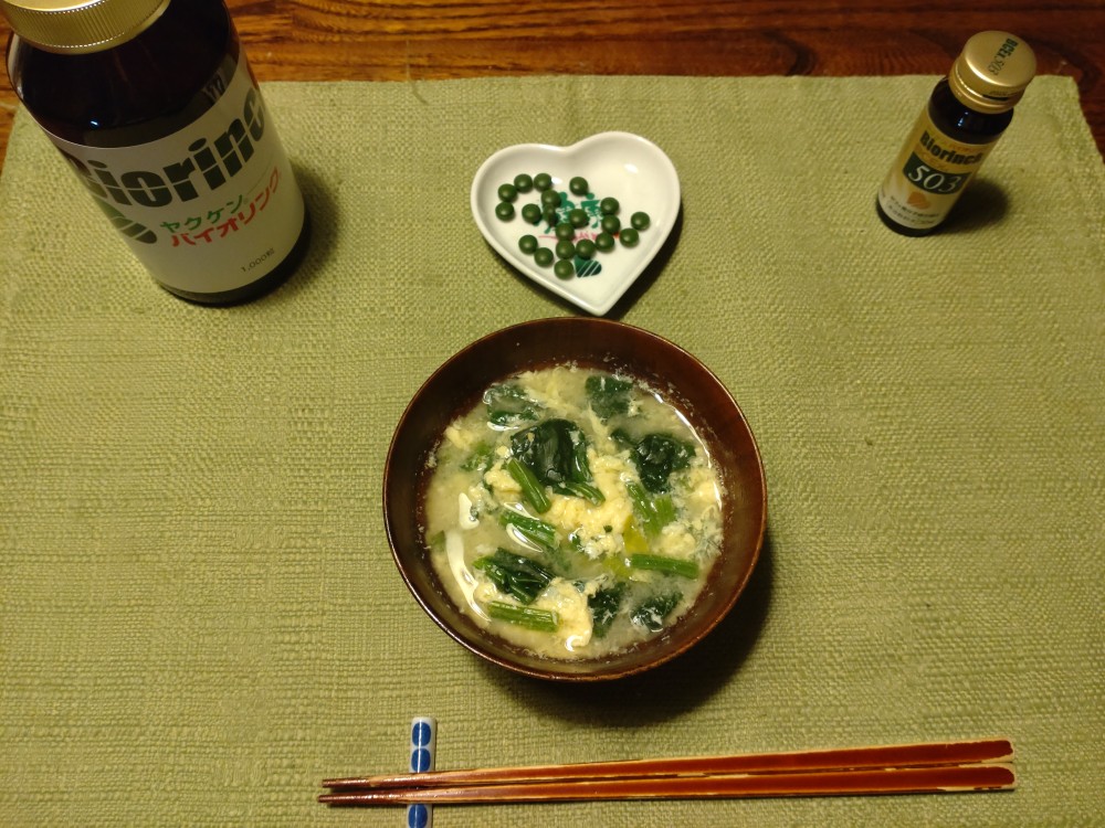 今朝は、ほうれん草、鶏卵の味噌汁です。