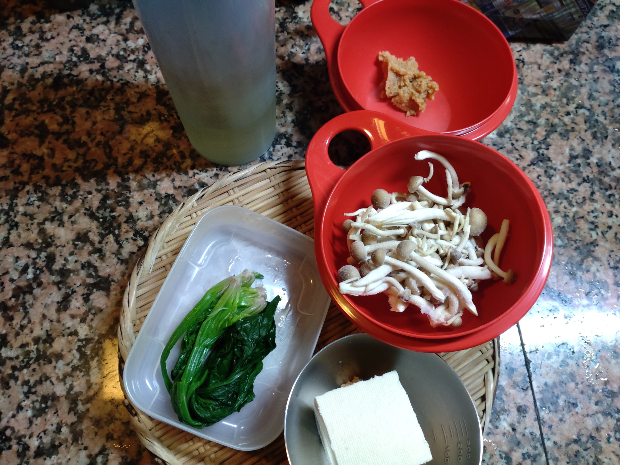 今朝は、ほうれん草、木綿豆腐、しめじの味噌汁です。