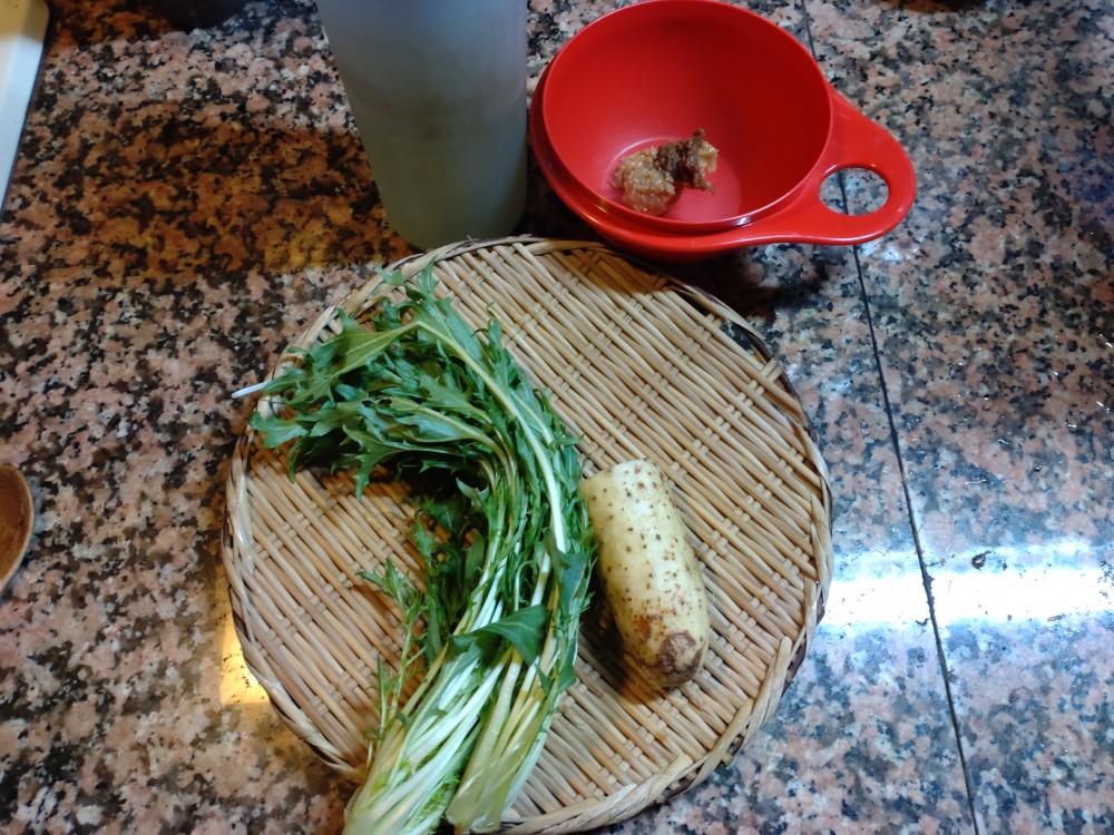 今朝は、長いも、水菜の味噌汁です!