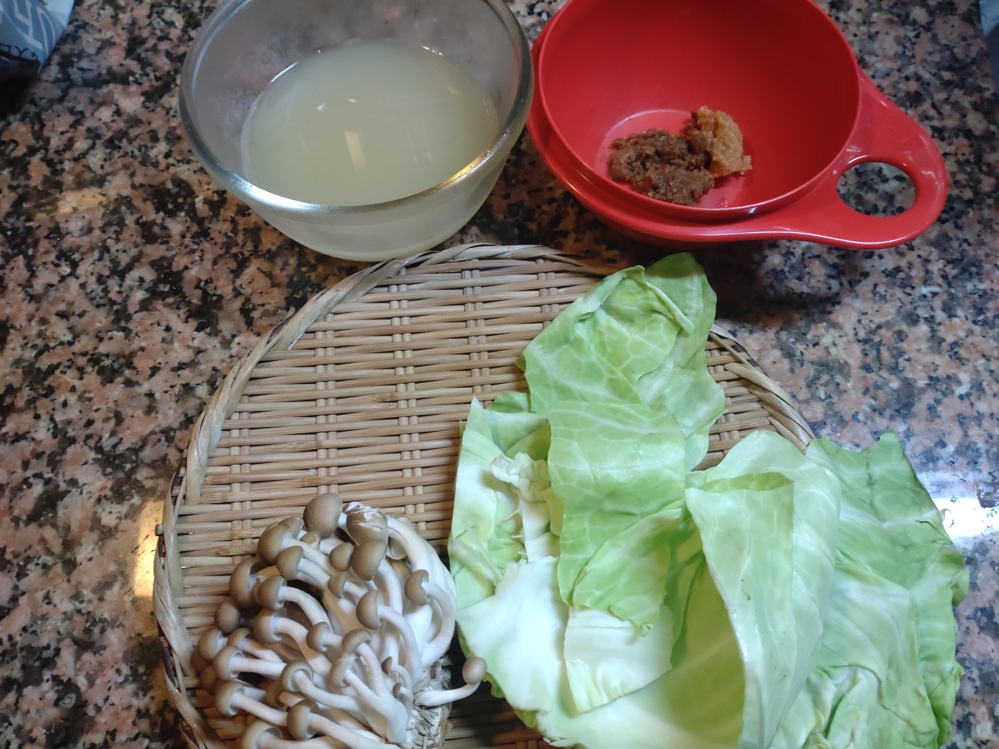 今朝は、しめじ、グリーンボール、大豆の煮汁の味噌汁です。