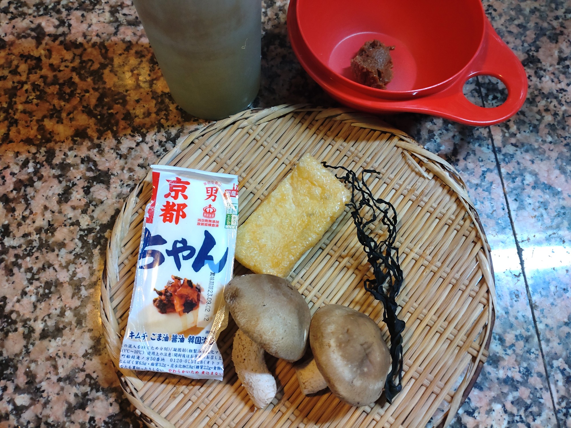 今朝は、豆腐、うすあげ、生しいたけ、わかめの味噌汁です。
