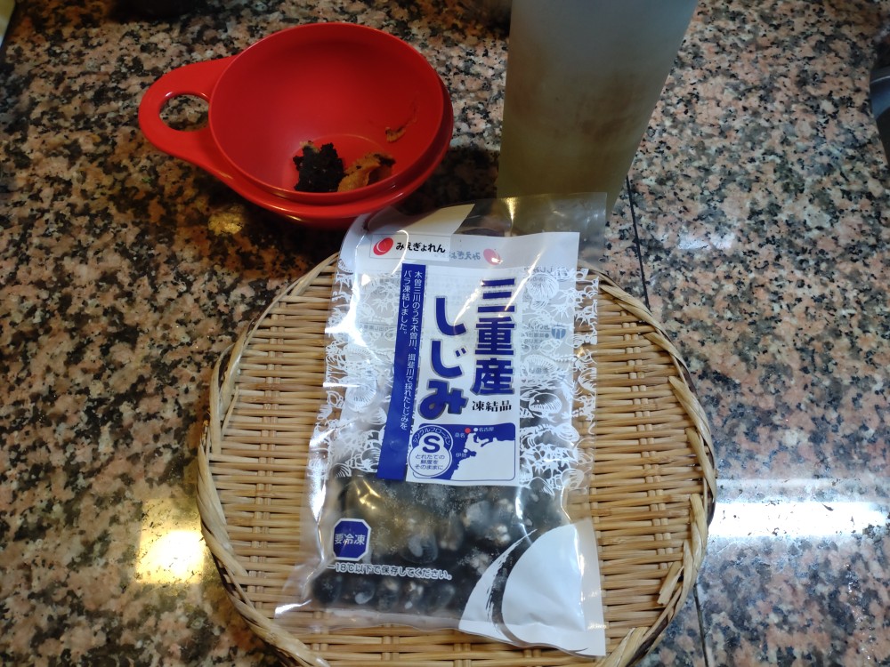 今朝は、冷凍しじみのお味噌汁です。