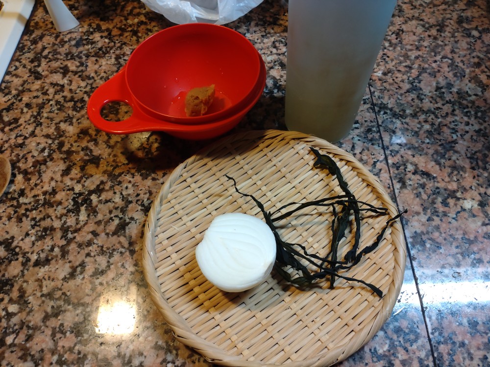 今朝は、新玉ねぎ、わかめの味噌汁です。