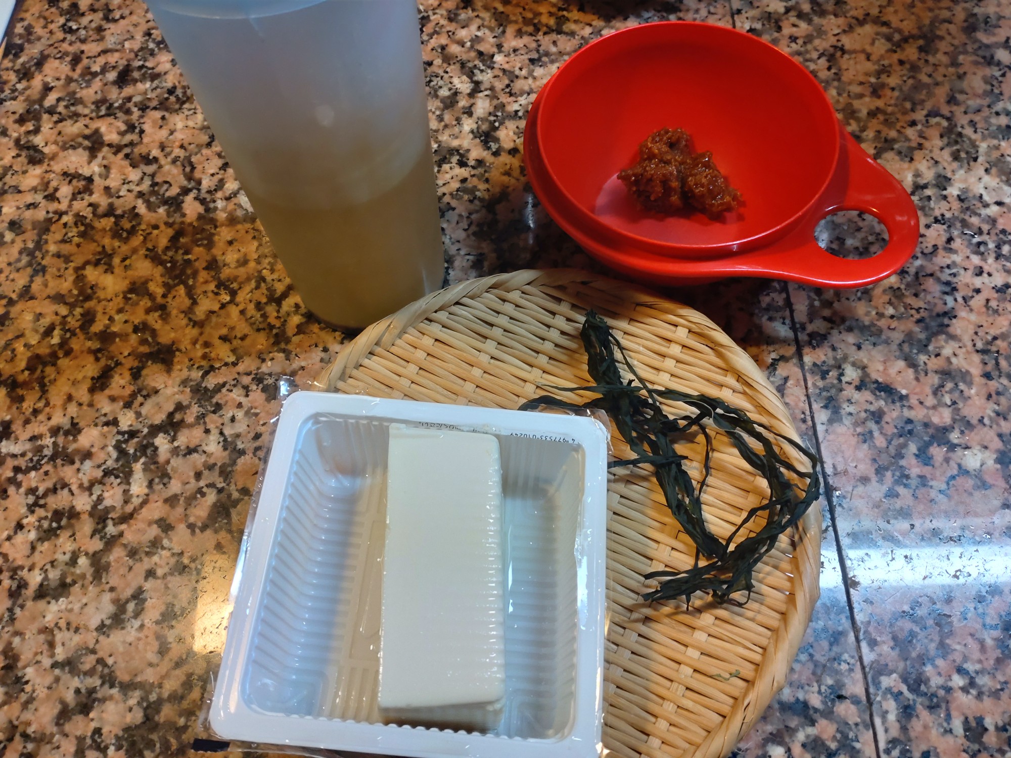 今朝は、絹ごし豆腐、わかめの味噌汁です。