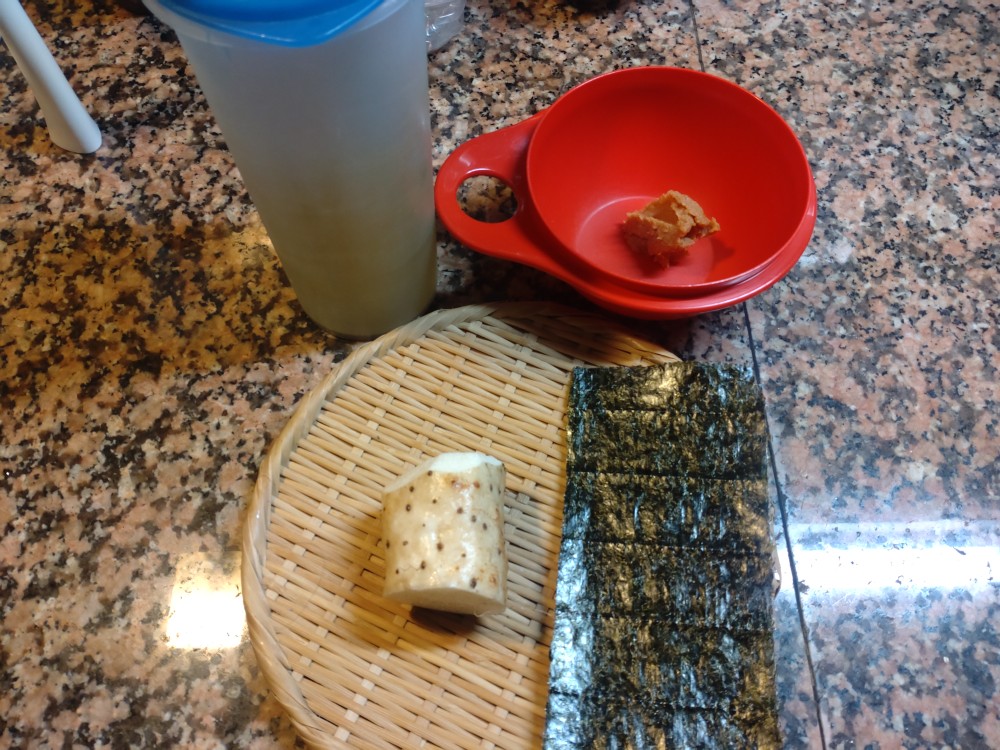 今朝は、長いも、成清海苔店さんの秋摘み一番焼き海苔のお味噌汁です。