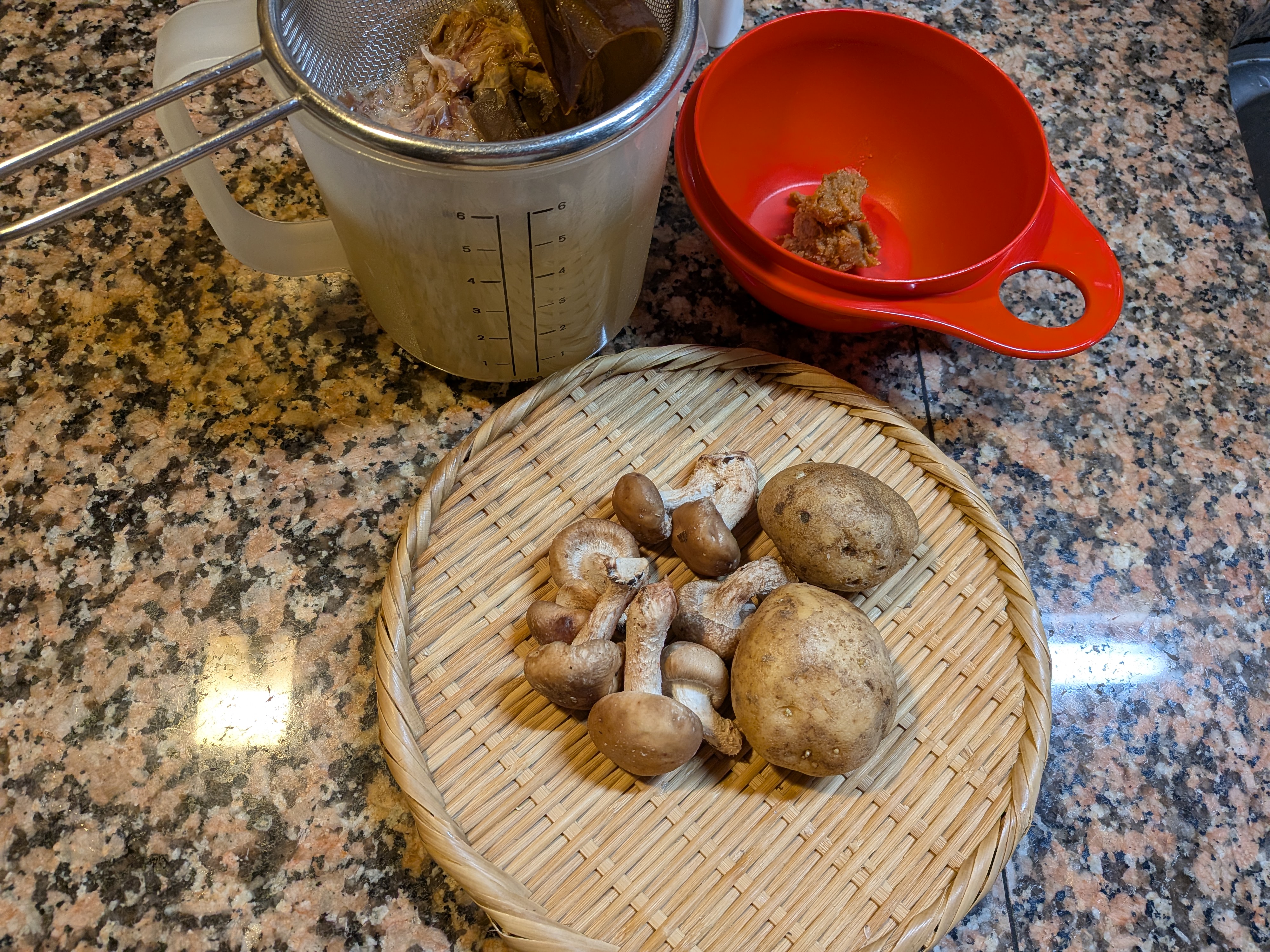 今朝は、じゃがいも、生しいたけの味噌汁です。