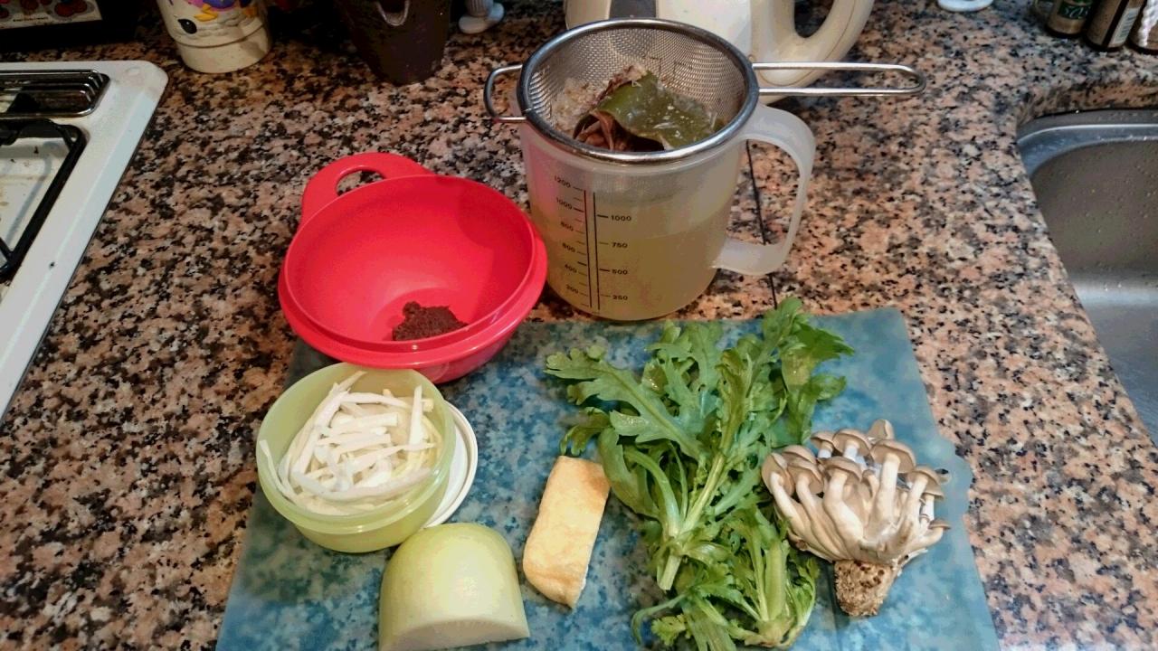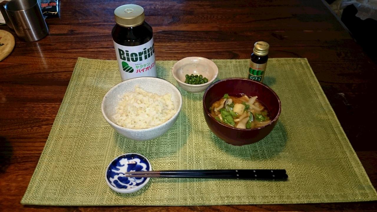 今朝は、大根、春菊、しめじ、うすあげの味噌汁です。