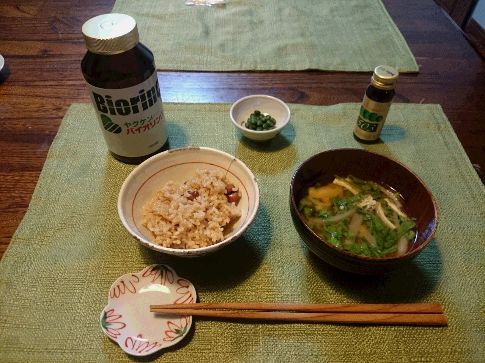 今日は、うすあげ、大根、春菊の味噌汁です。