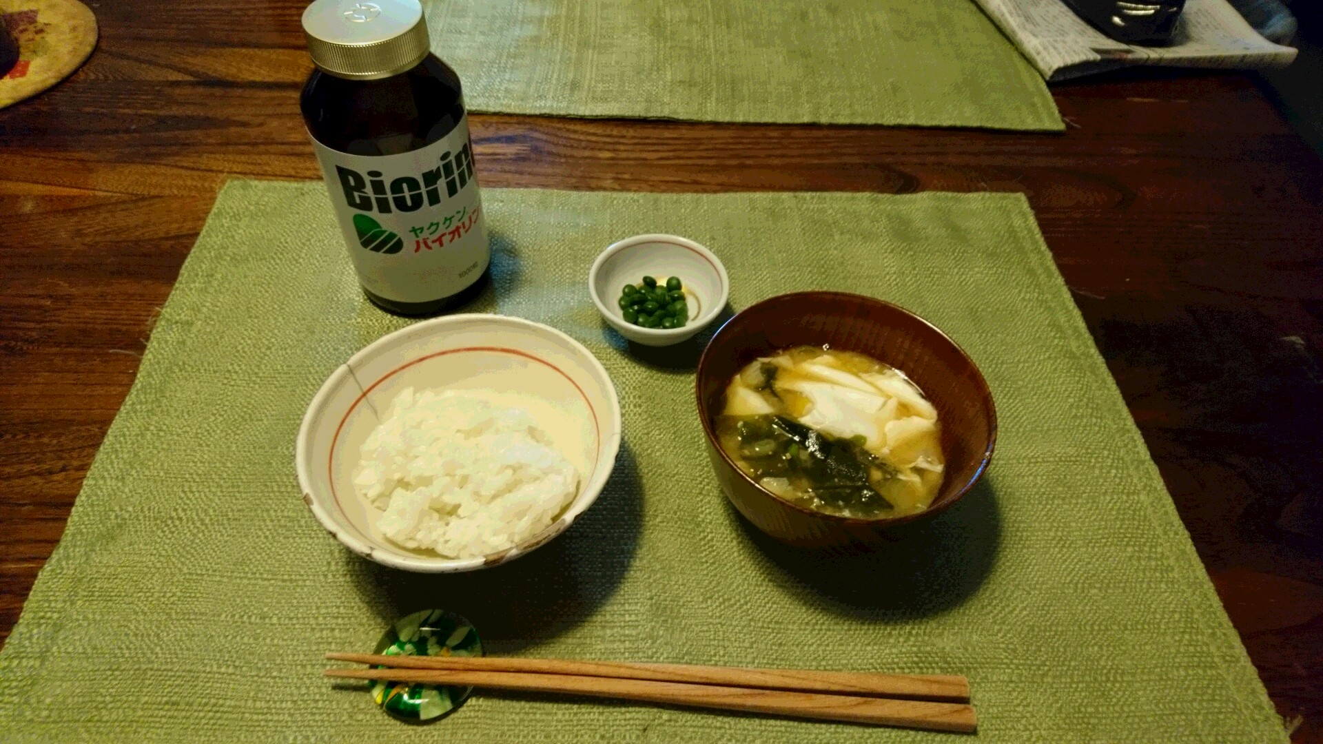 今朝は、おとし卵、九条ねぎ、わかめ、湯葉の味噌汁です。