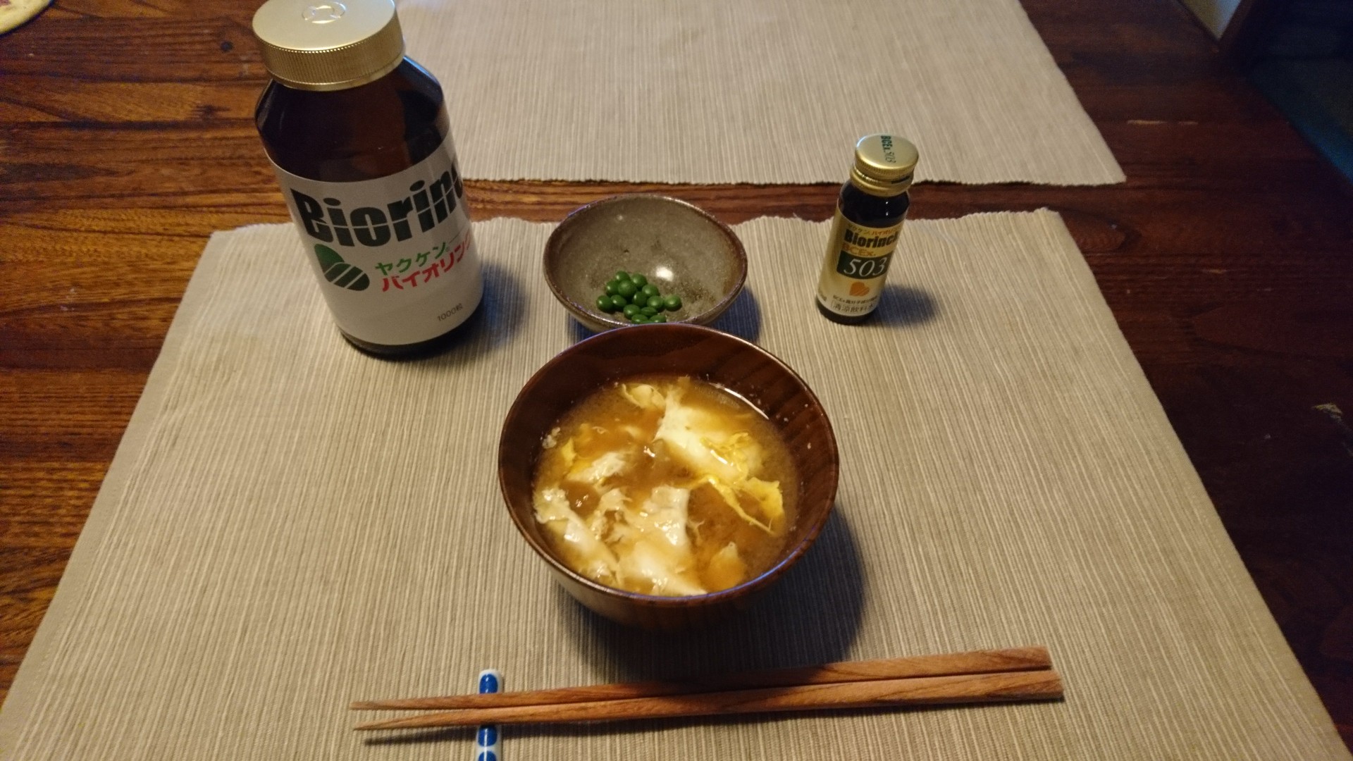 粗食のようですが、かつおとこんぶの出汁、味噌、卵が1個、バイオリンクで、意外にもタンパク質はしっかり摂れています。