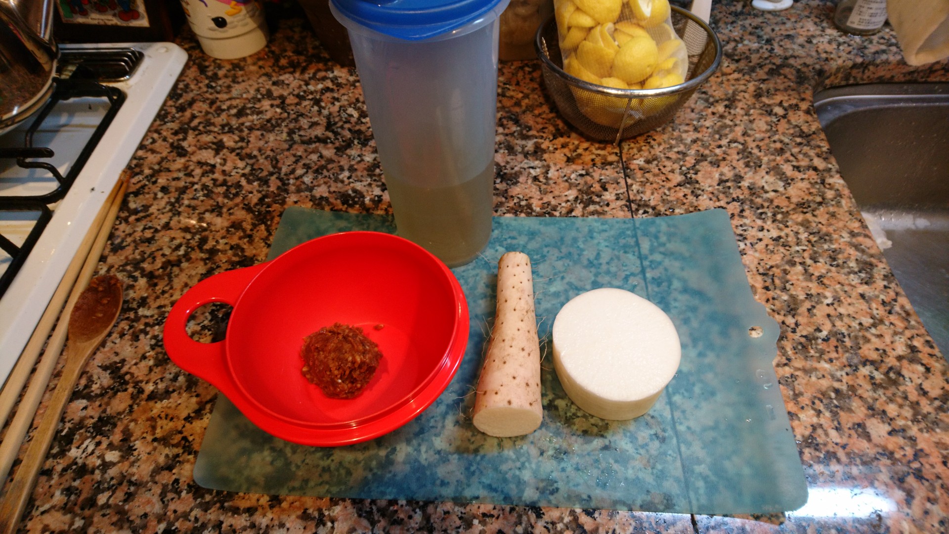 今朝は、大根、ながいもの味噌汁です。