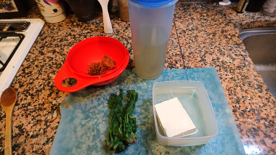 今朝は、とうふ、ほうれん草の味噌汁です。