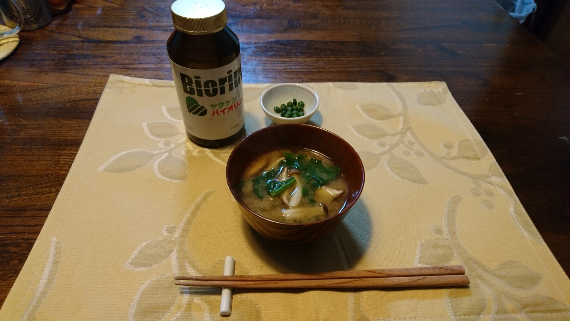 今朝は、生しいたけ、しめじ、ほうれん草の味噌汁です。