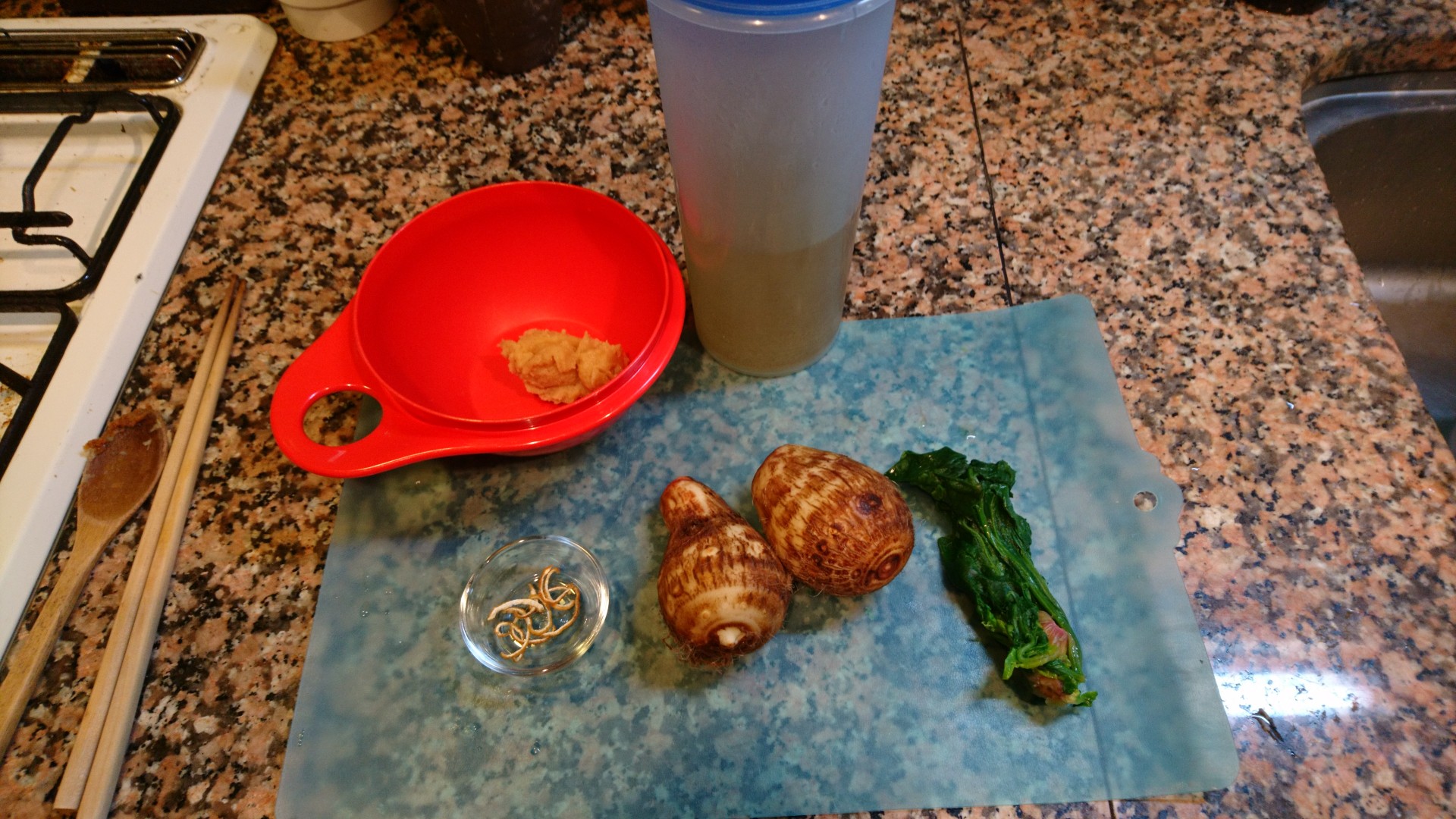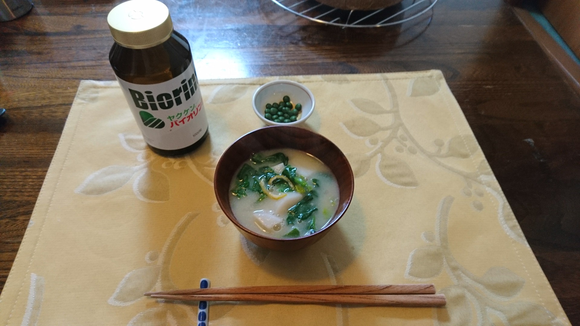 今朝は、里芋、ほうれん草、柚子の味噌汁です。