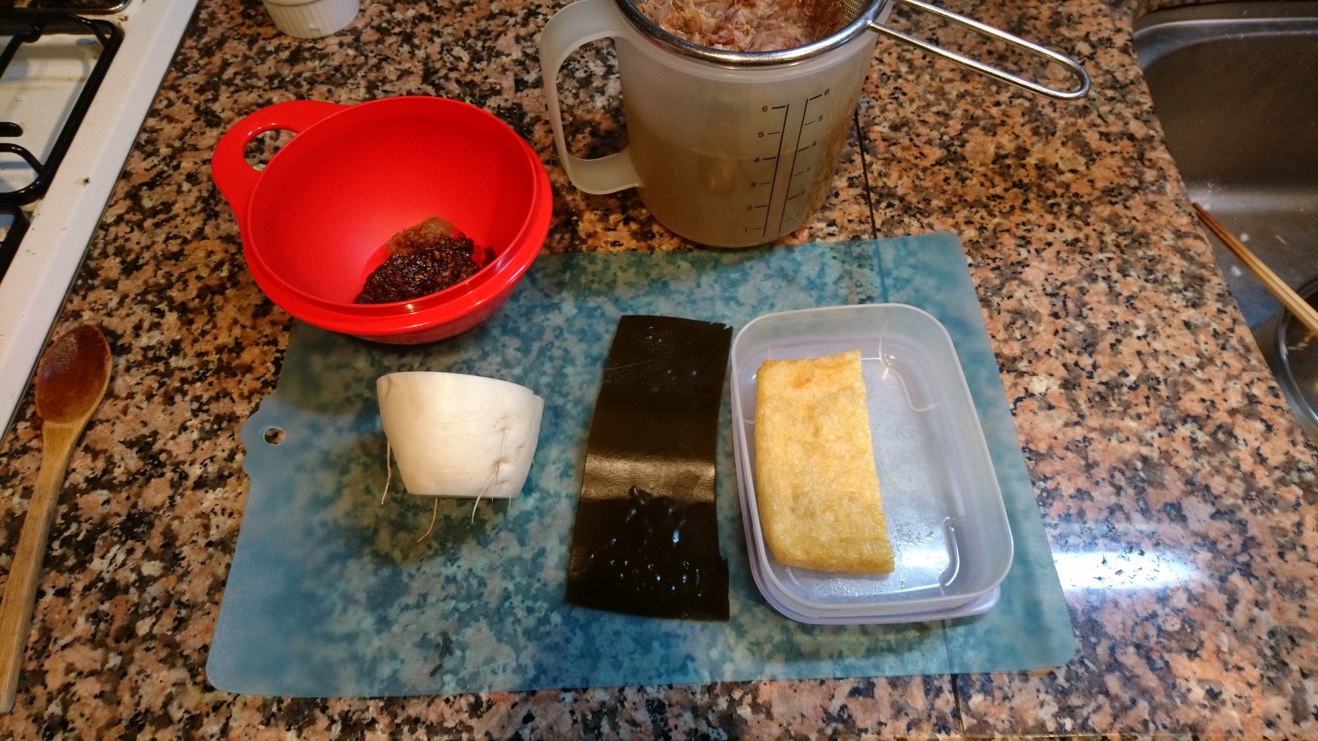 今朝は、青首大根、うすあげ、出汁をとったあとの羅臼昆布の味噌汁です。