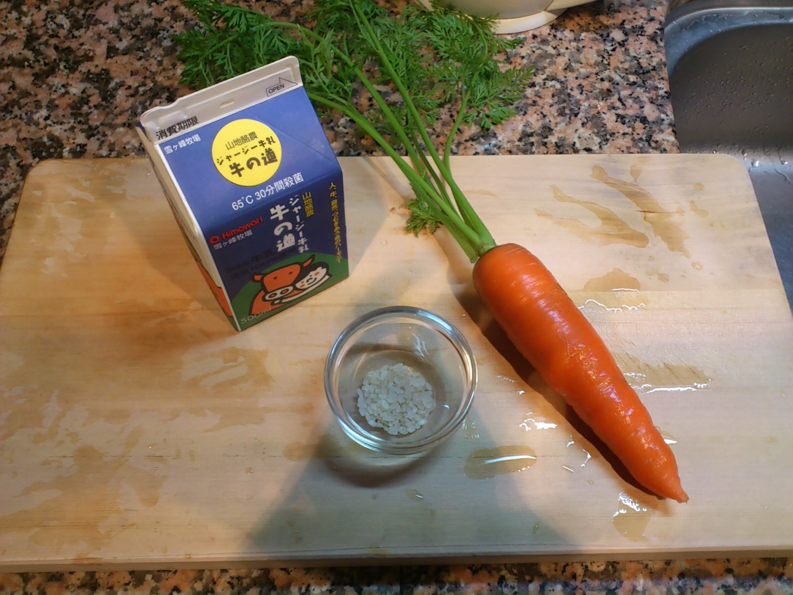 今日は人参が美味しいので、玉ねぎを使わず、人参と海の精だけ。とろみが欲しかったので、お米を少し使いました。
