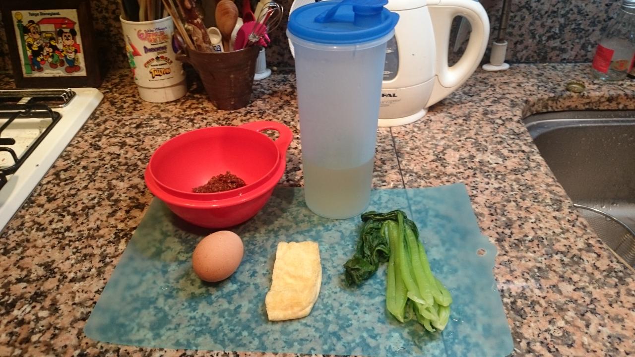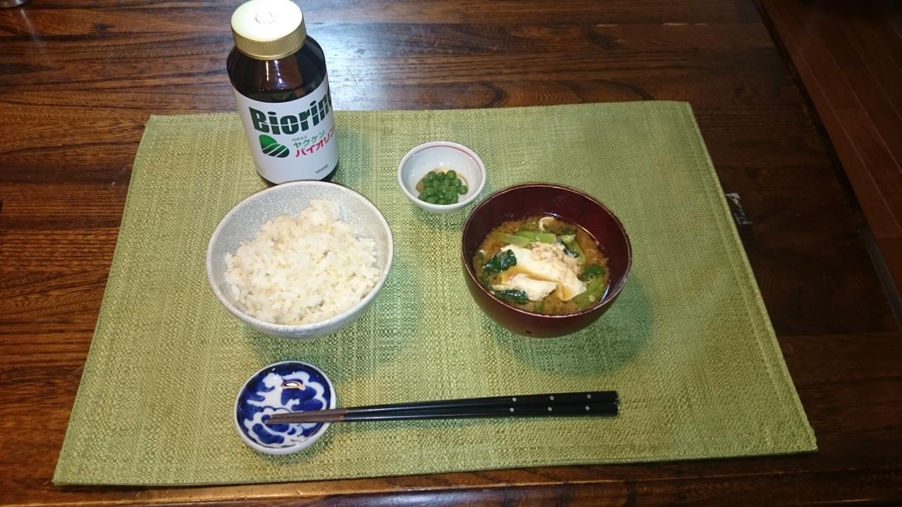 今朝は、卵、小松菜、うすあげのお味噌汁です。