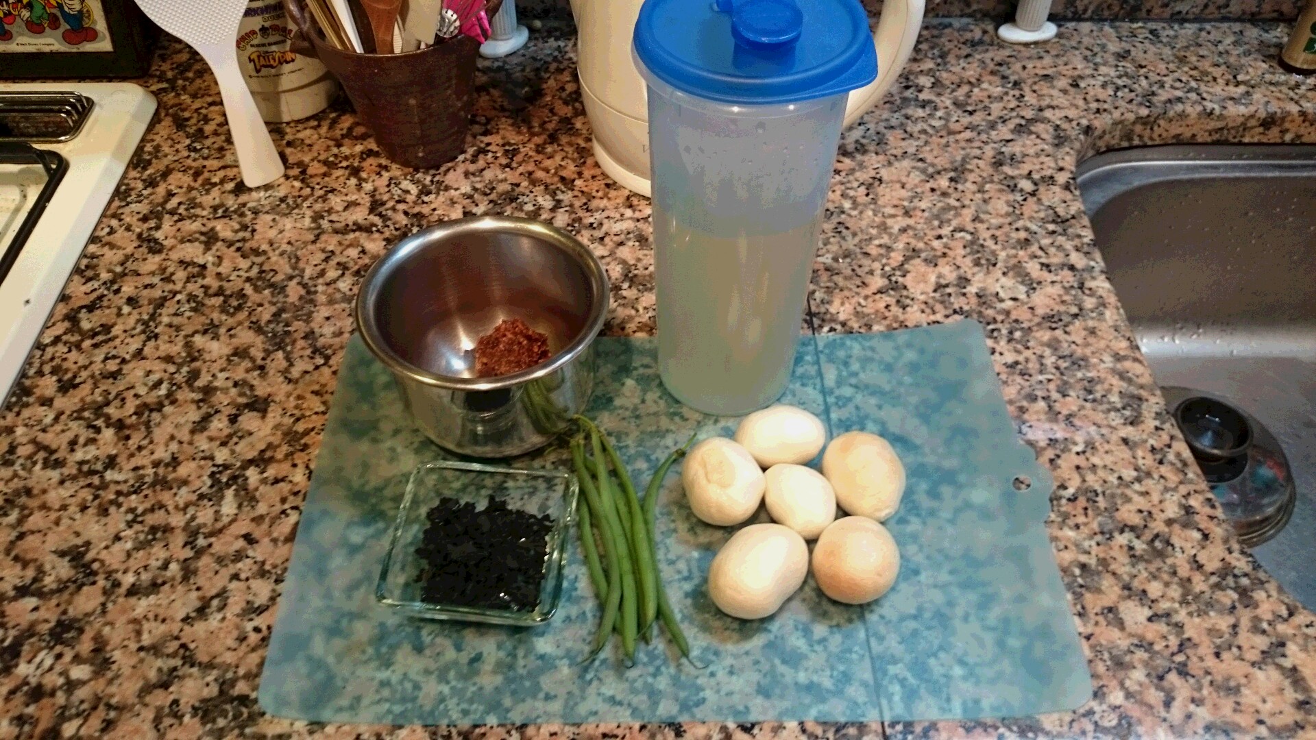 今朝は、かぶの葉、ワカメ、うすあげの味噌汁です。