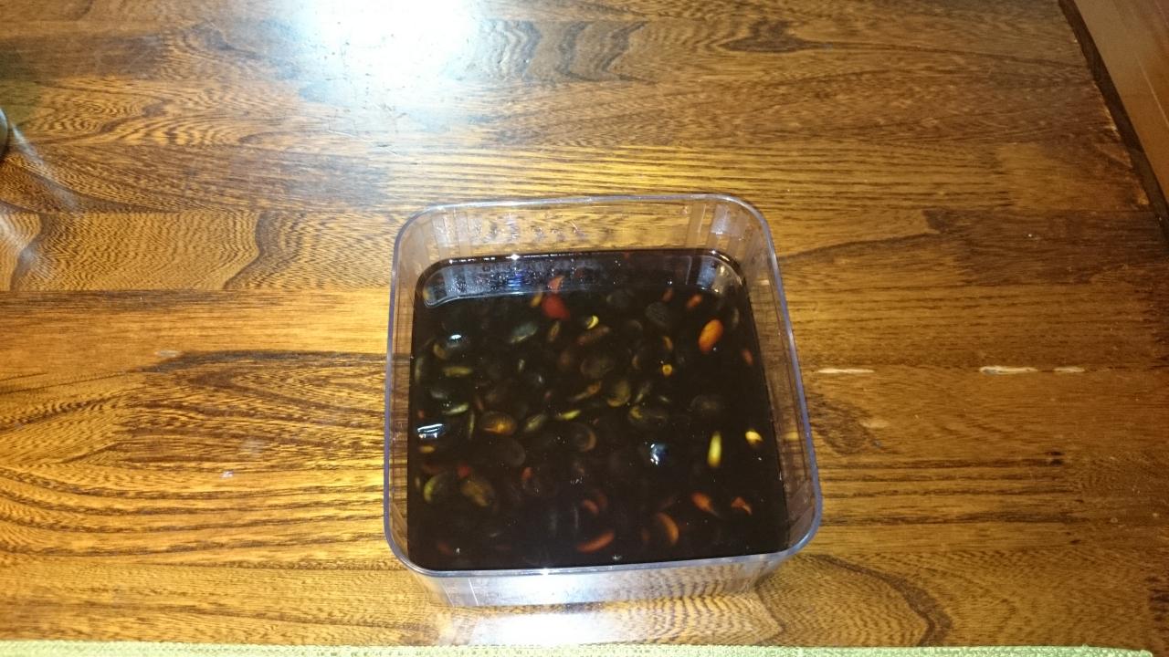 先日の親友のお土産に、鞍掛豆があって、早々に、浸し豆を作りました。