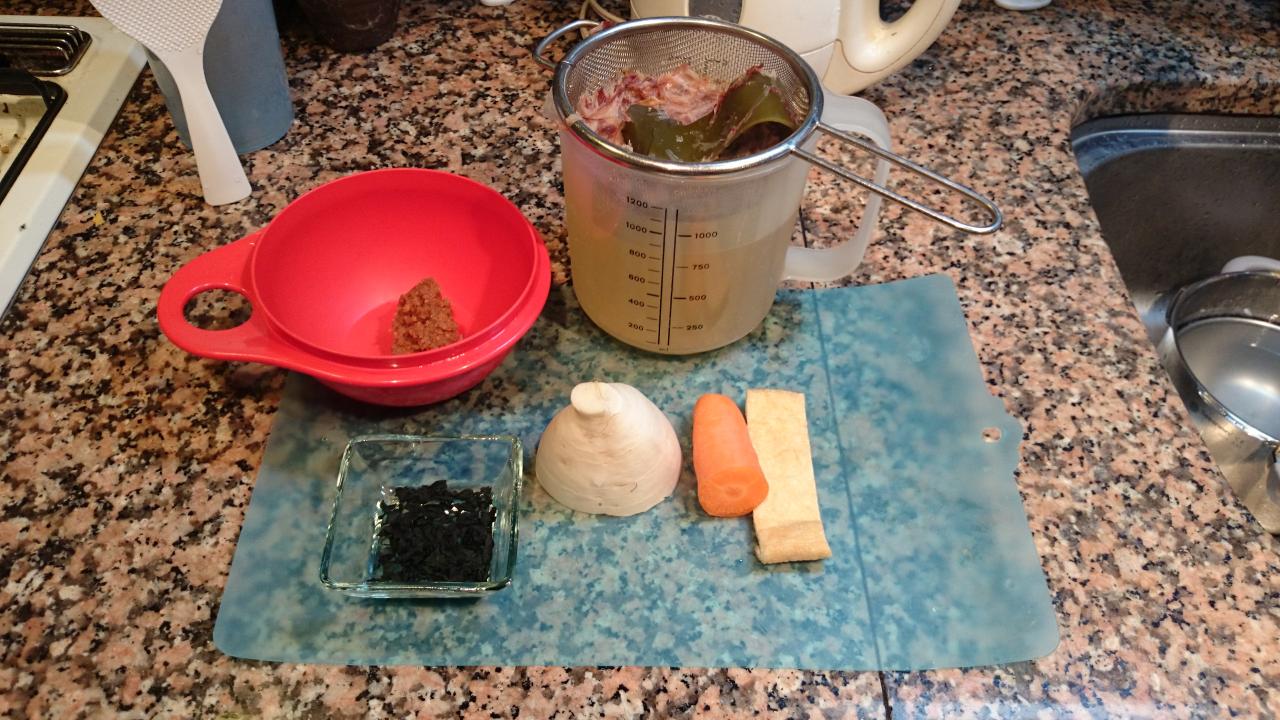 今朝は、大根、にんじん、うすあげ、わかめの味噌汁です。