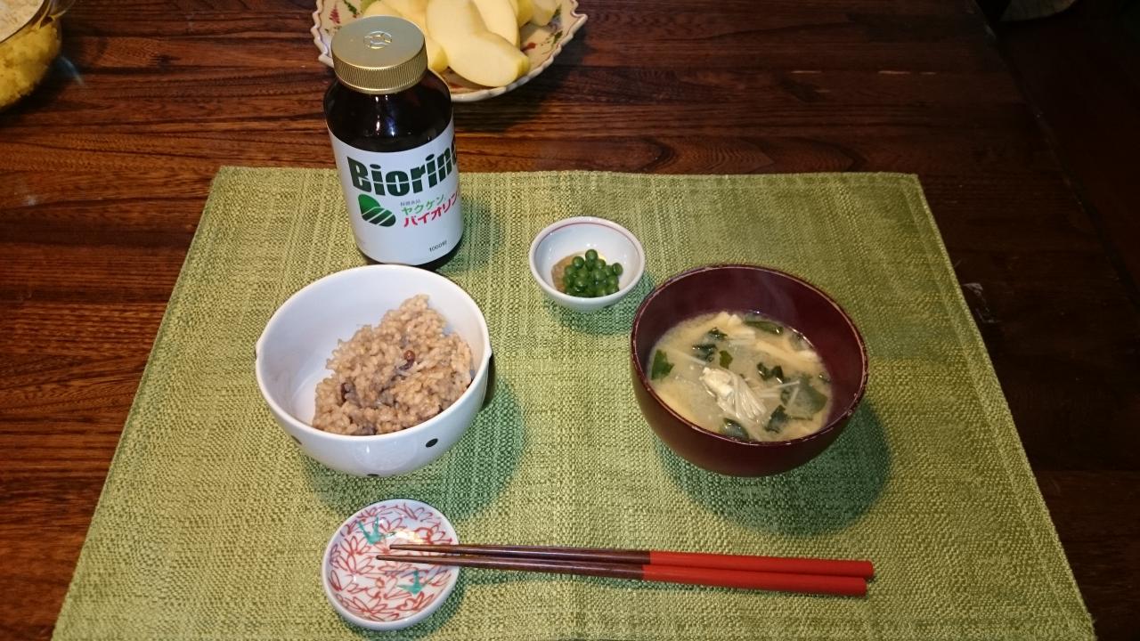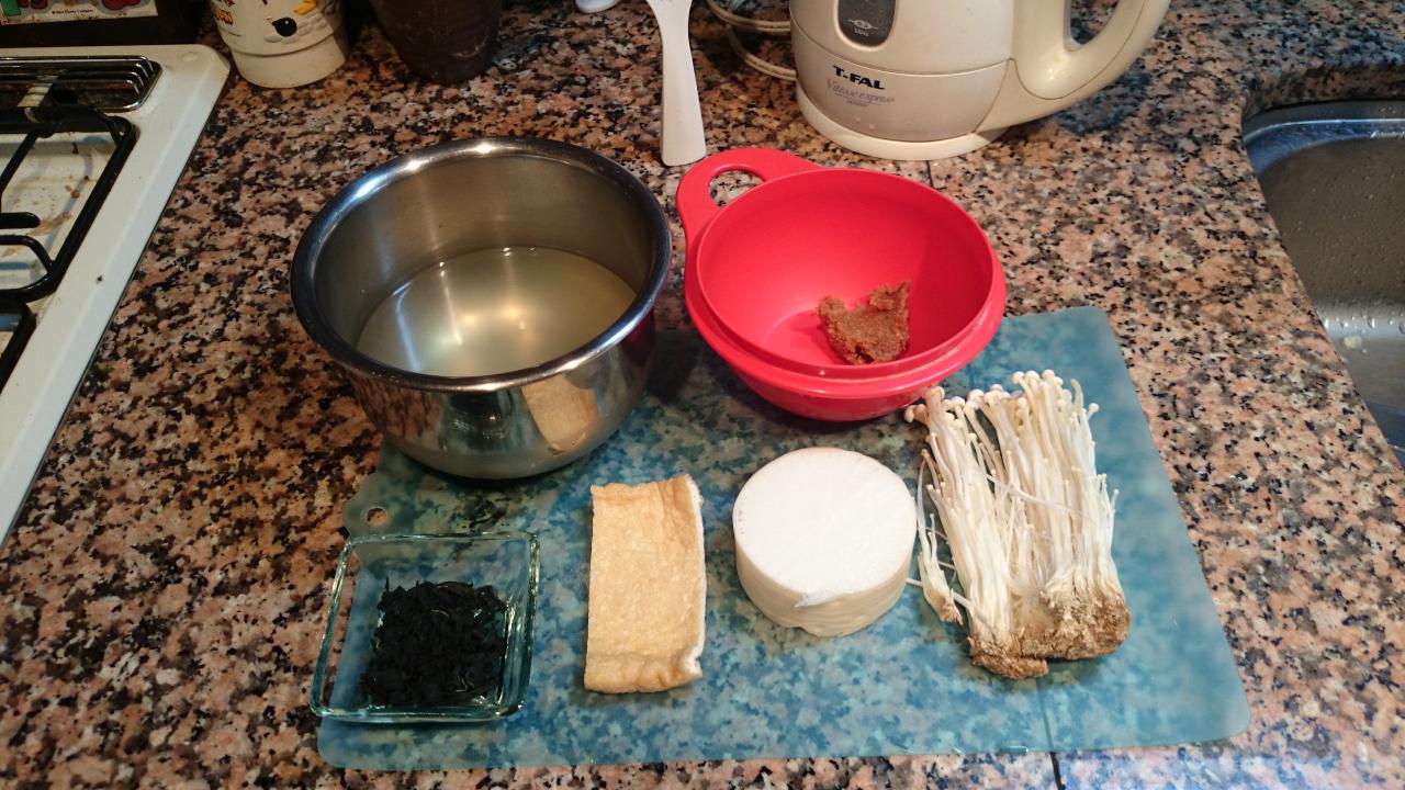今朝は、だいこん、えのき、わかめ、うすあげの味噌汁です。