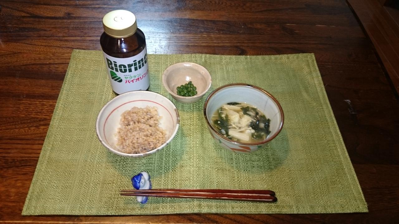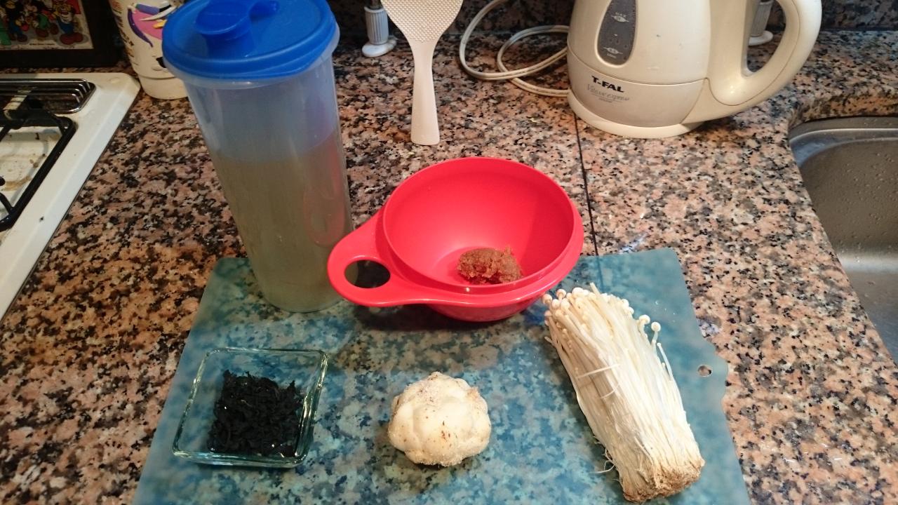 今朝は、ゆりね、えのき、わかめの味噌汁です。