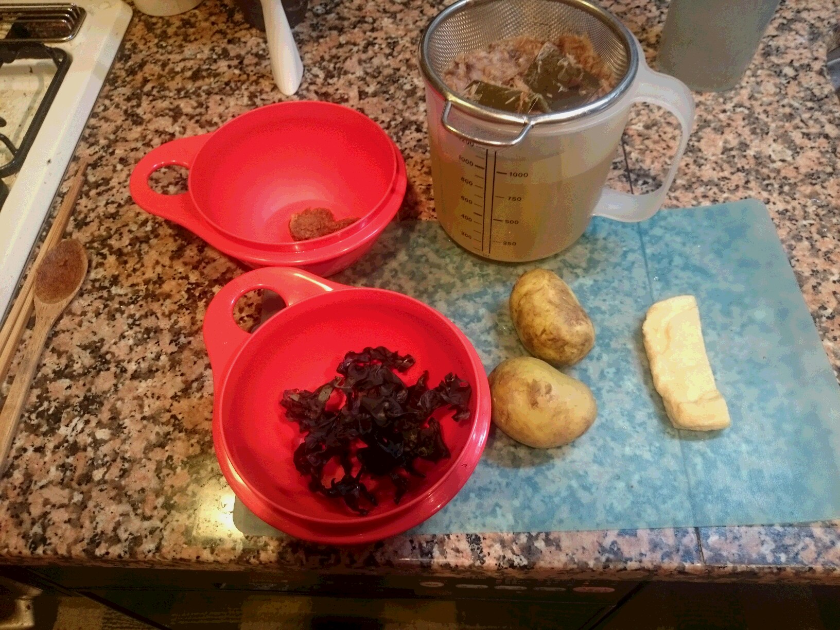 今朝は、銀杏草、じゃがいも、うすあげの味噌汁です。