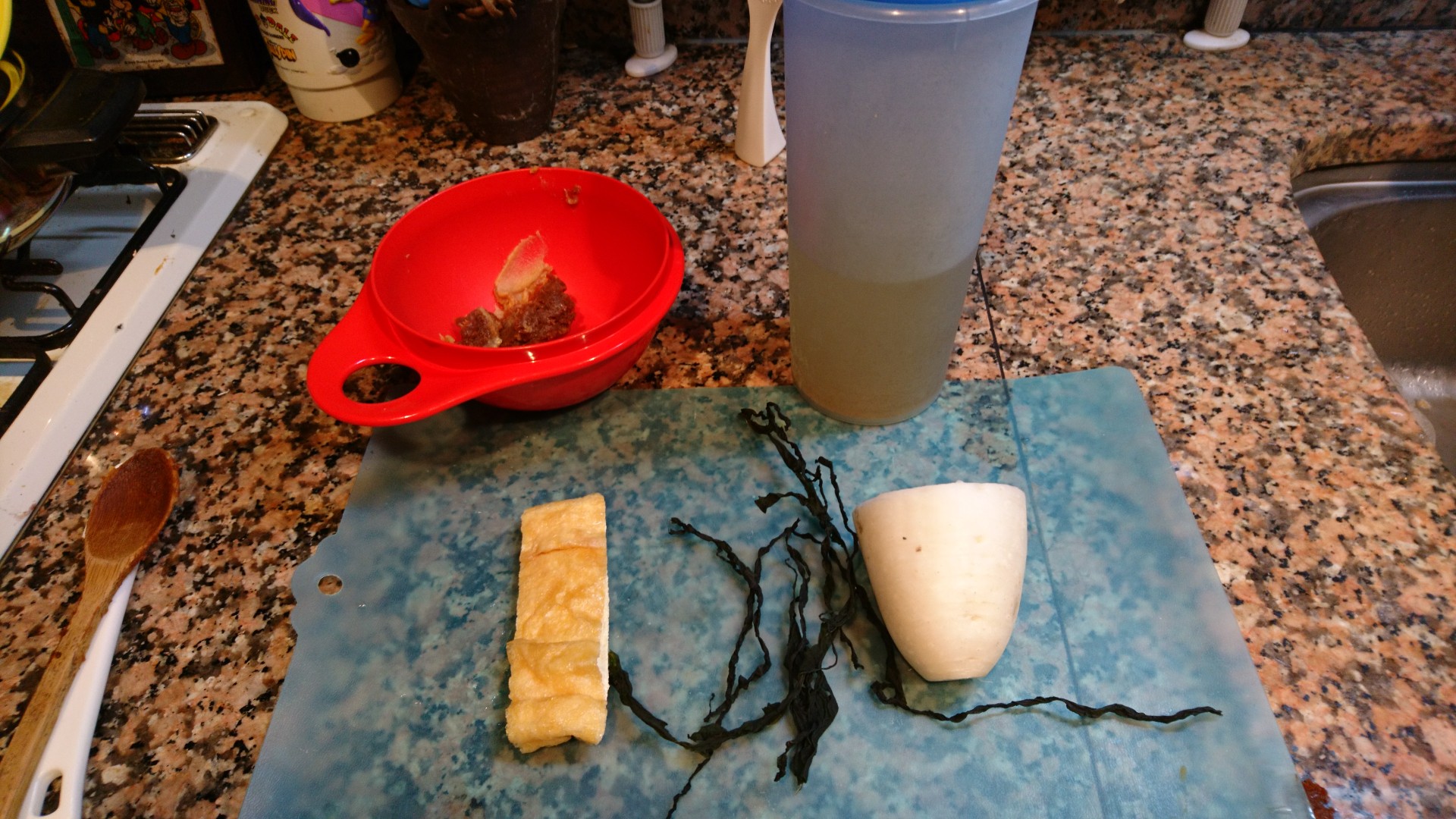 今朝は、大根、うすあげ、わかめの味噌汁です。