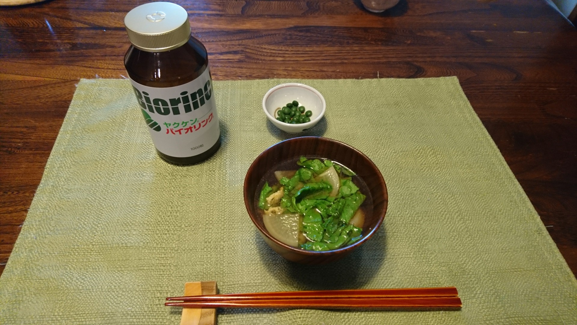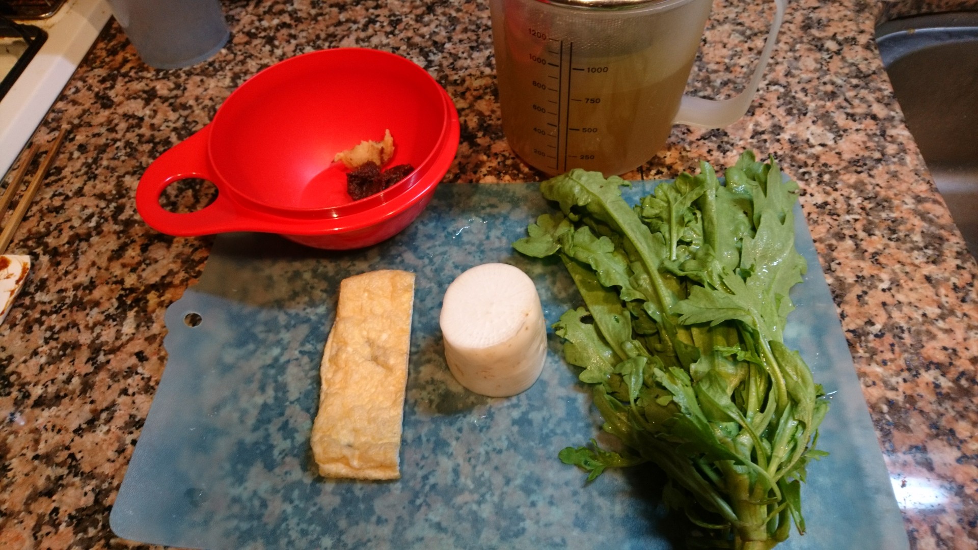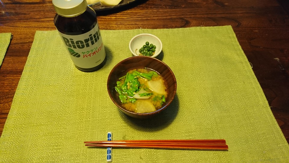今朝は、大根、小松菜、うすあげの味噌汁です。