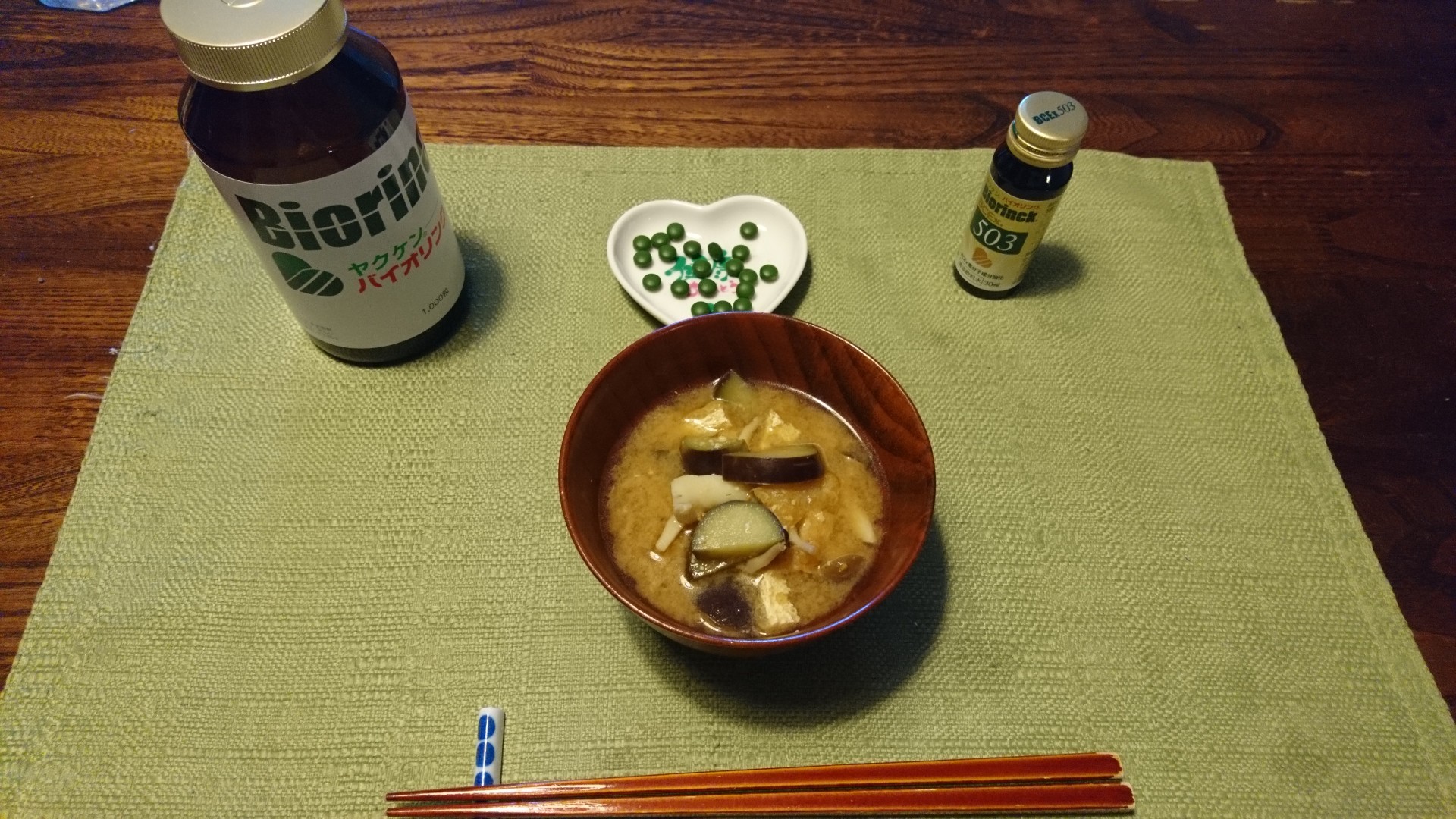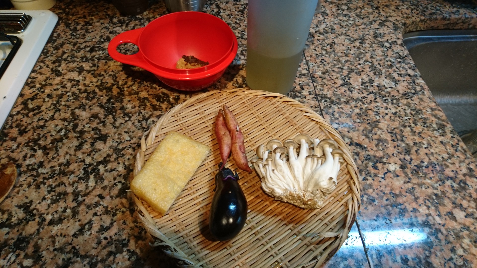 今朝は、うすあげ、茄子、さつまいも、しめじの味噌汁です。