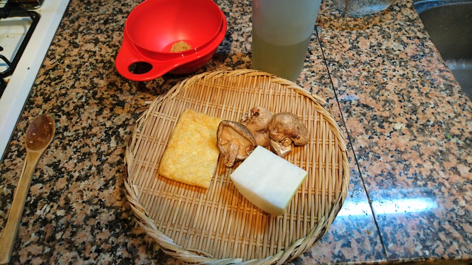 今朝は、大根、うすあげ、原木生しいたけの味噌汁です。