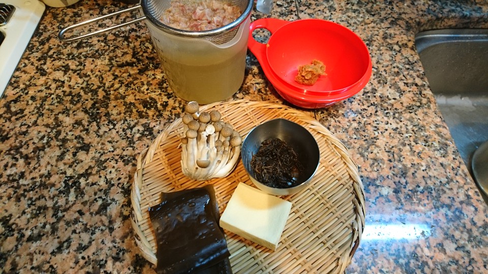 今朝は、高野豆腐、沖縄もずく、しめじ、出汁をとった後の羅臼昆布です。