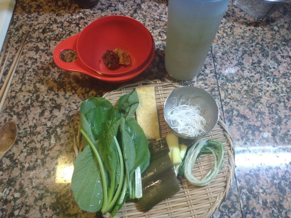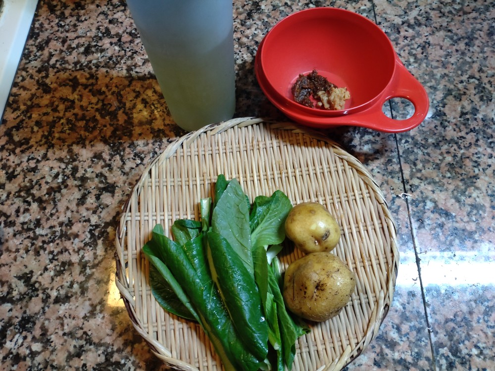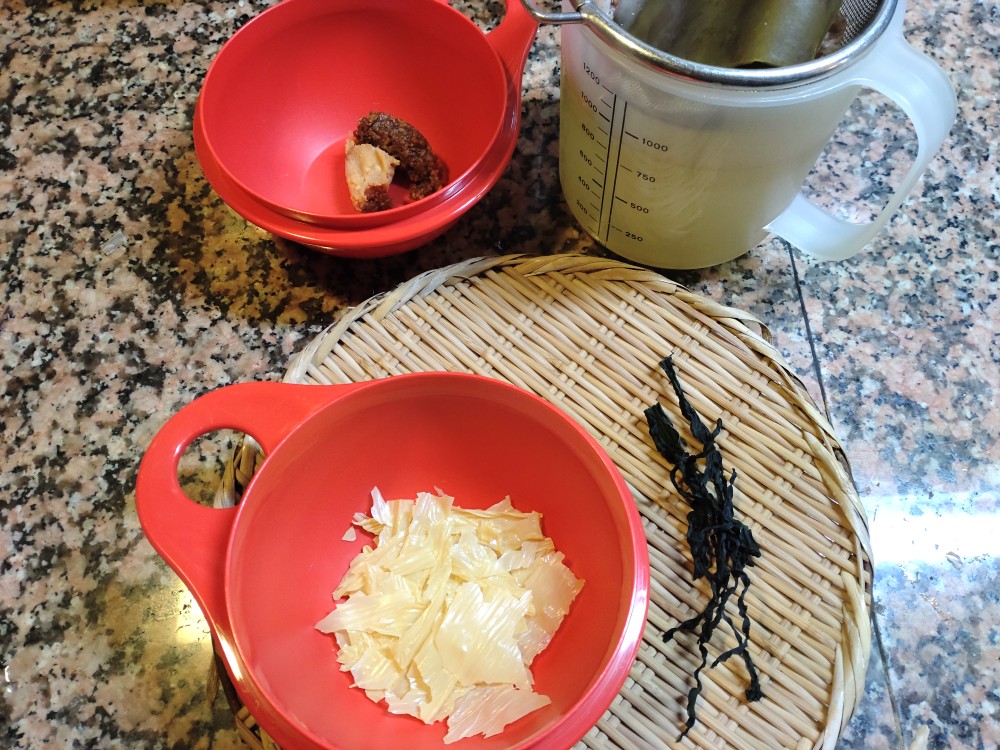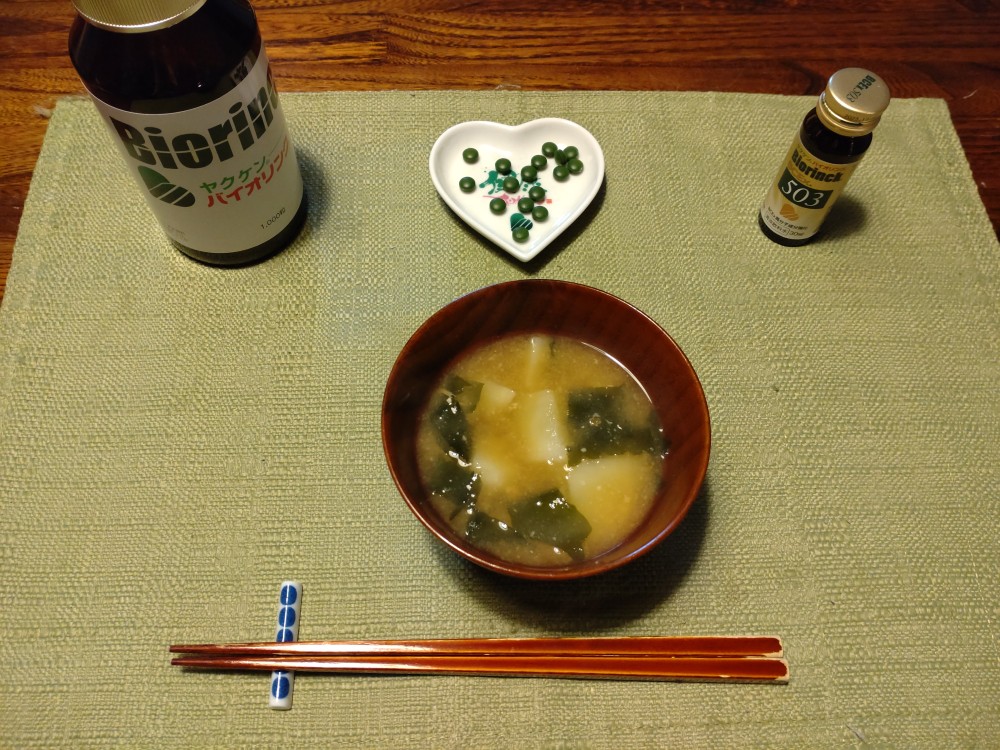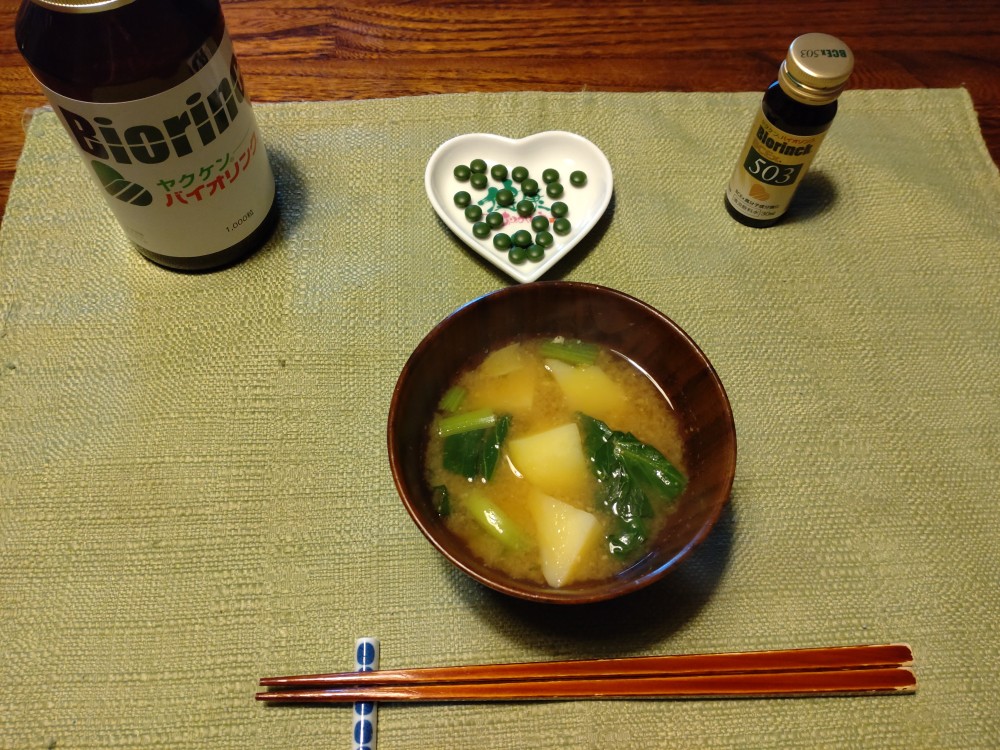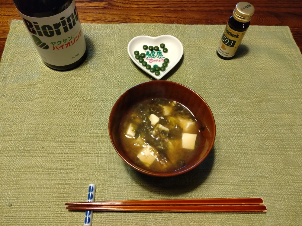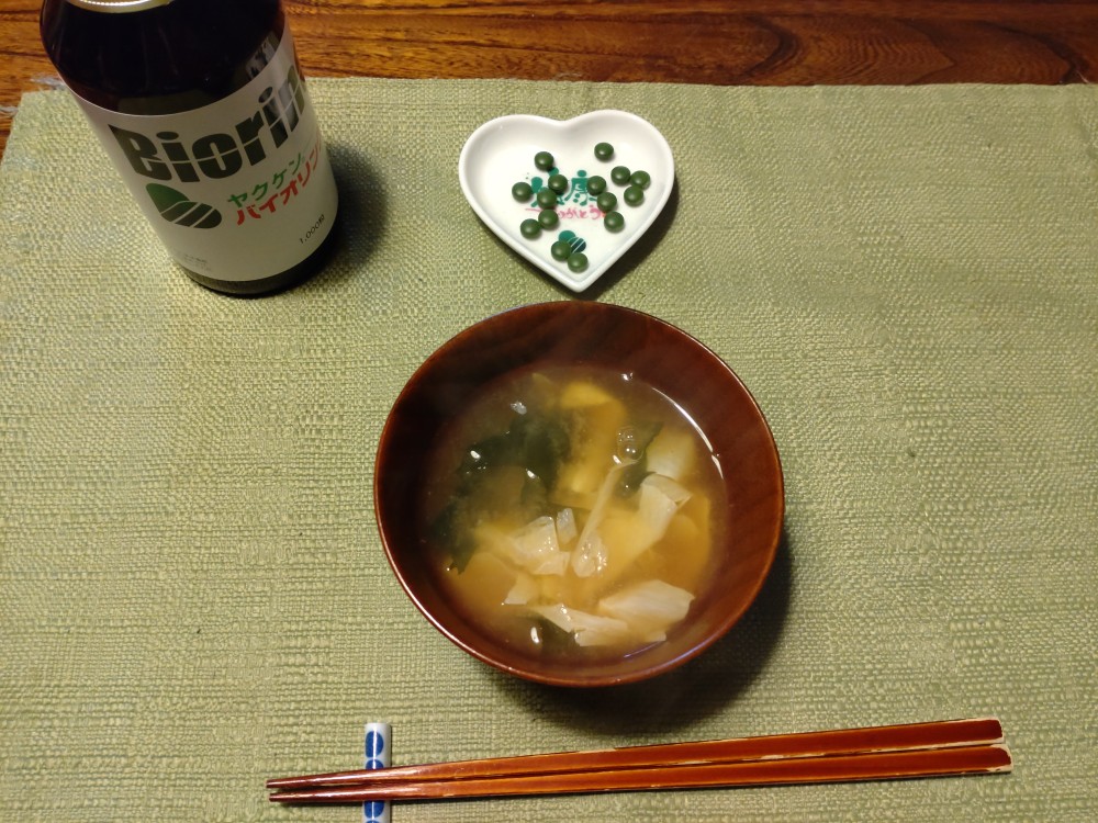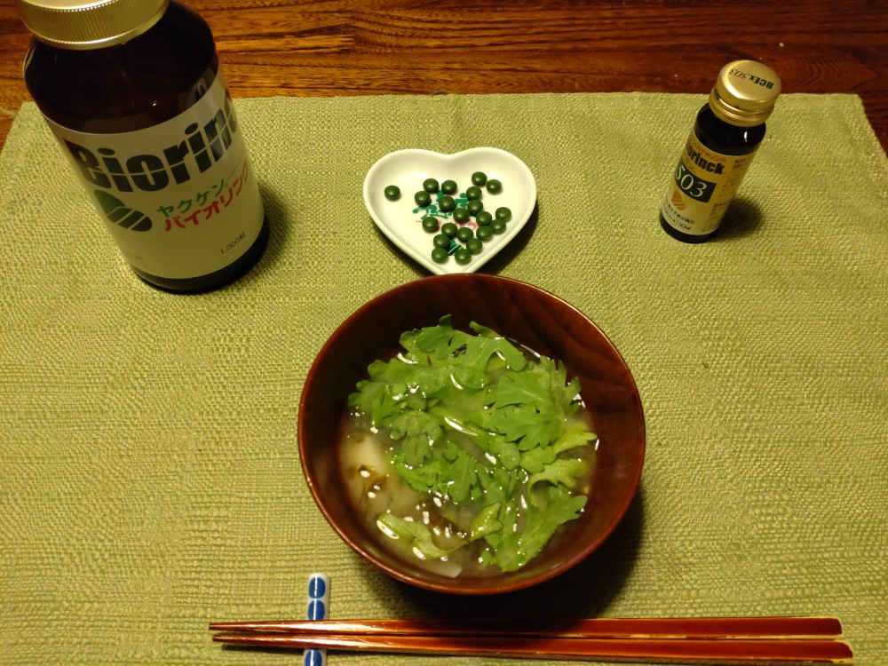 今朝は、ユリ根、焼き海女のり、春菊の味噌汁です。