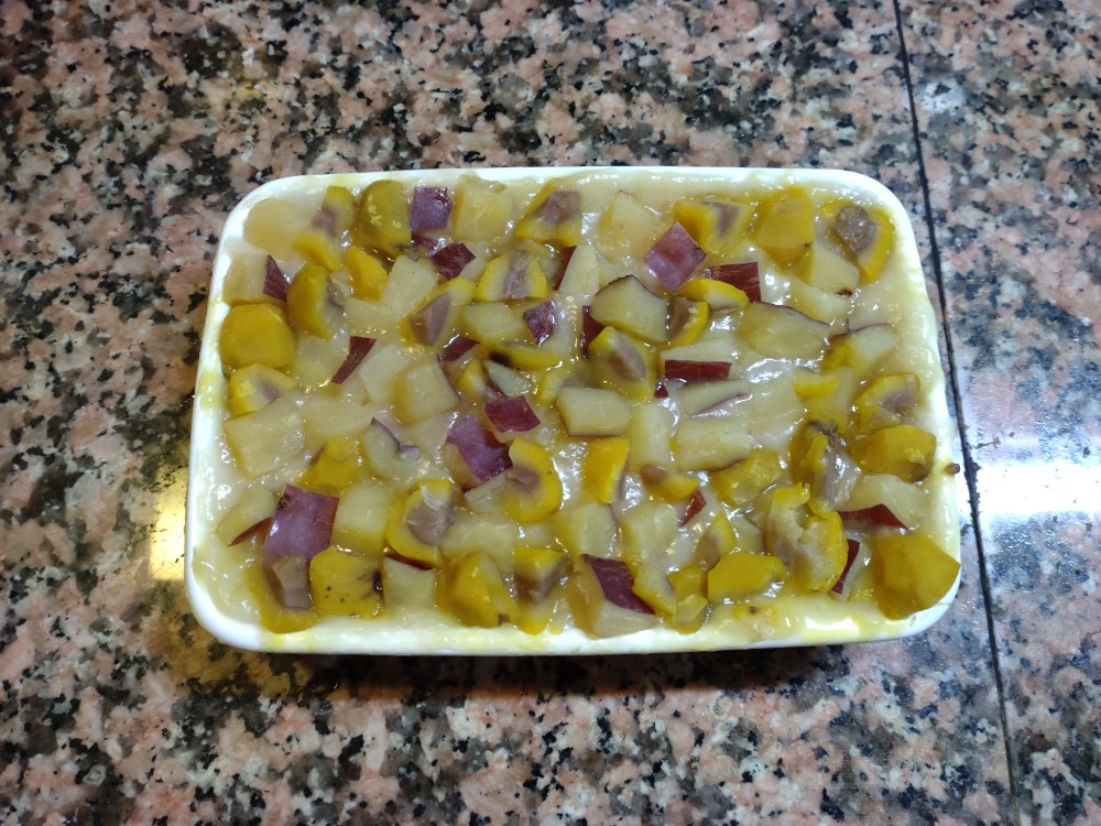 今日は、さつまいもと栗の甘煮が残っていたので、栗さつまいも外郎です(笑)