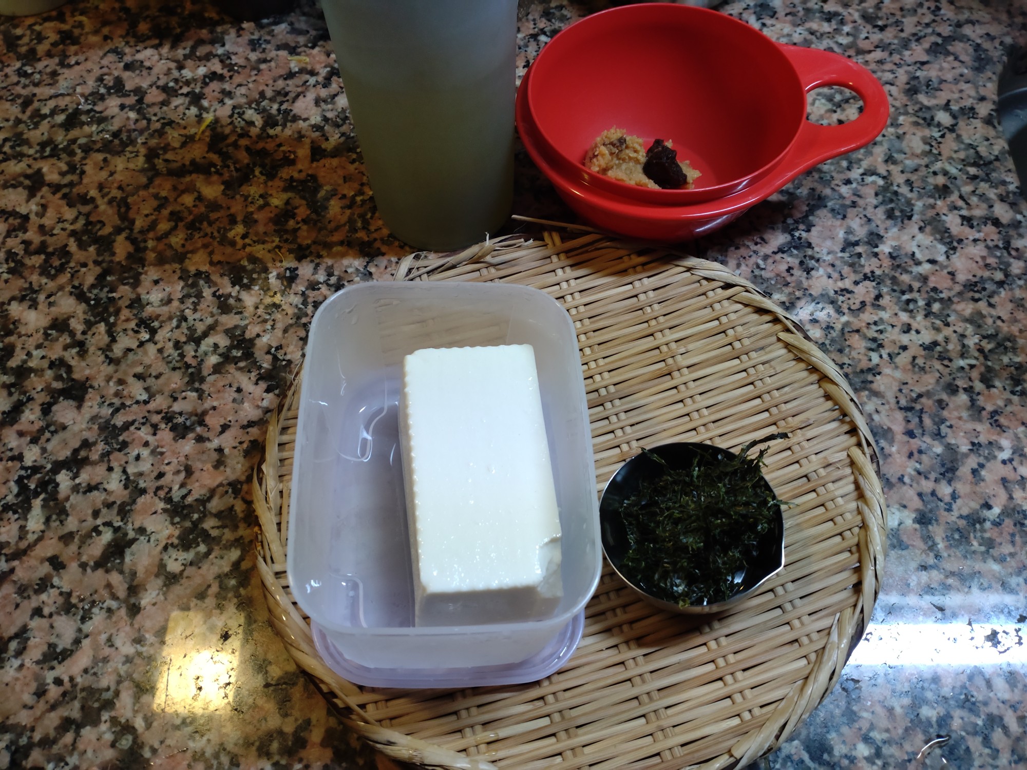 今朝は、絹ごし豆腐、あおさの味噌汁です。