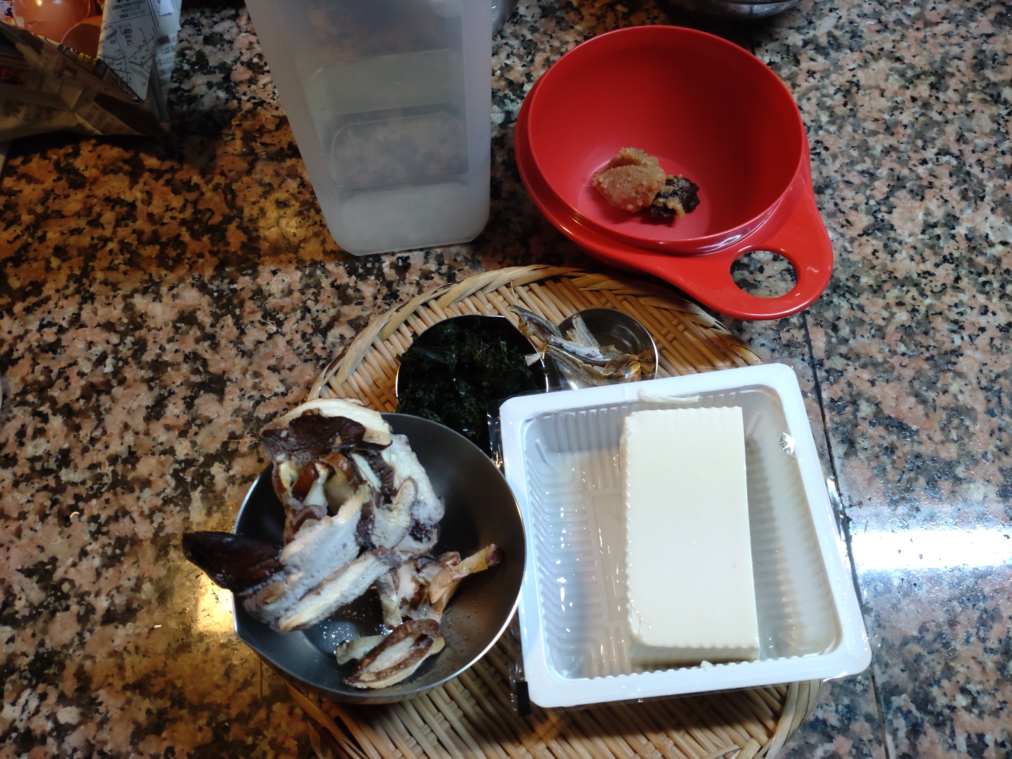 今朝は、絹ごし豆腐、生しいたけ、焼き海女のり、いりこの味噌汁です。