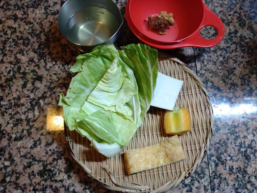 今朝は、春きゃべつ、うすあげ、にんじん、大根の味噌汁です。