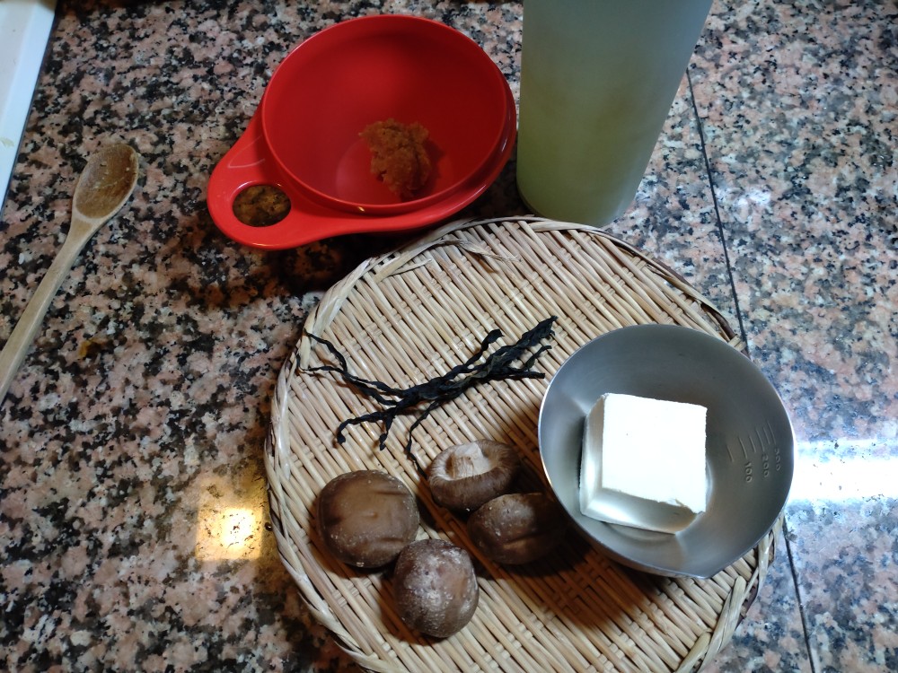 今朝は、生しいたけ、木綿豆腐、わかめの味噌汁です。