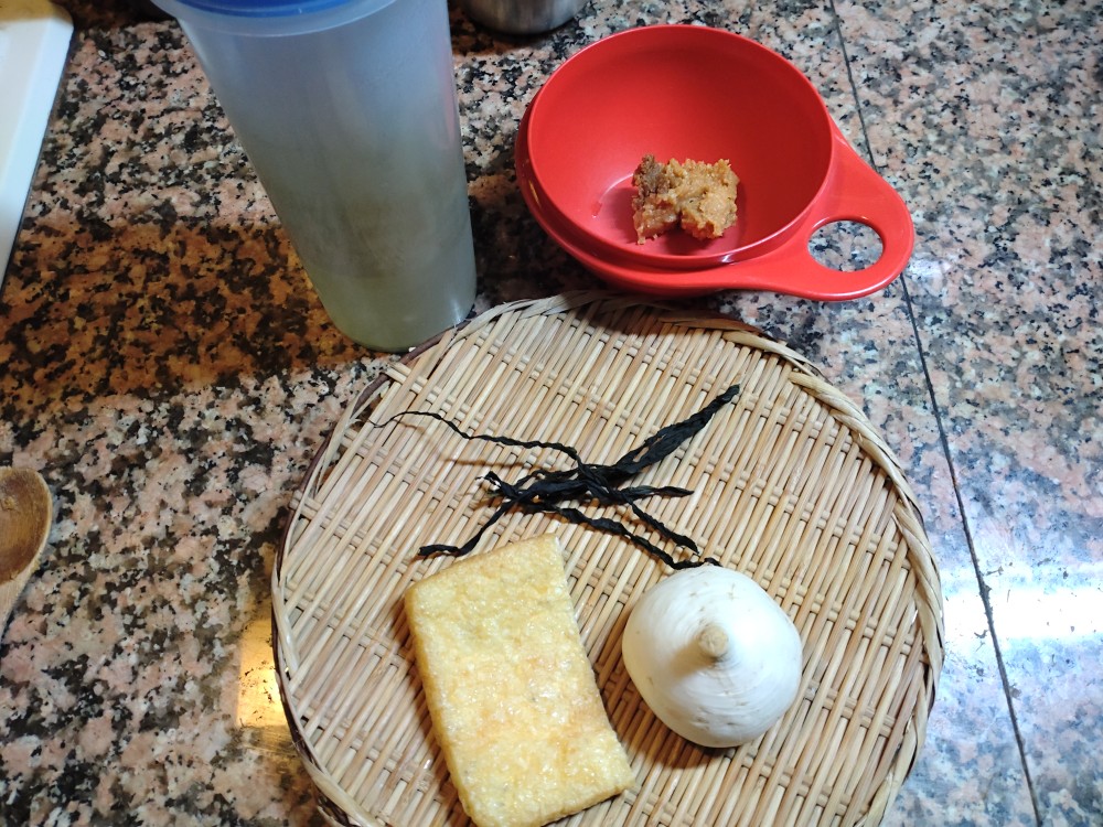 今朝は、小かぶ、うすあげ、わかめの味噌汁です。