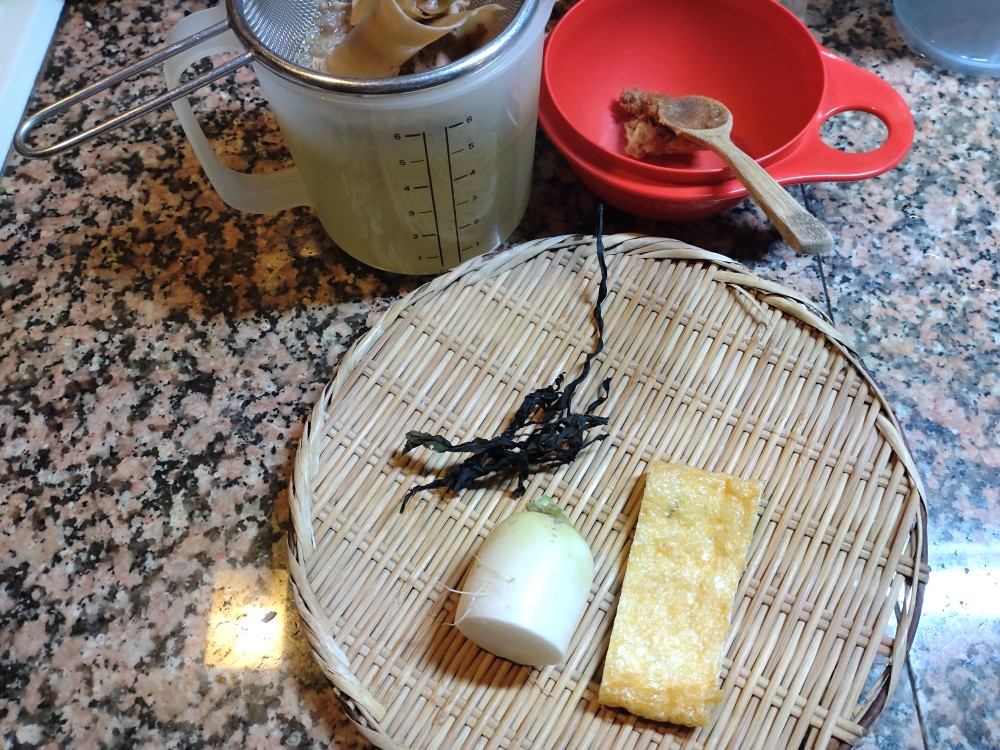 今朝は、大根、うすあげ、わかめの味噌汁です。