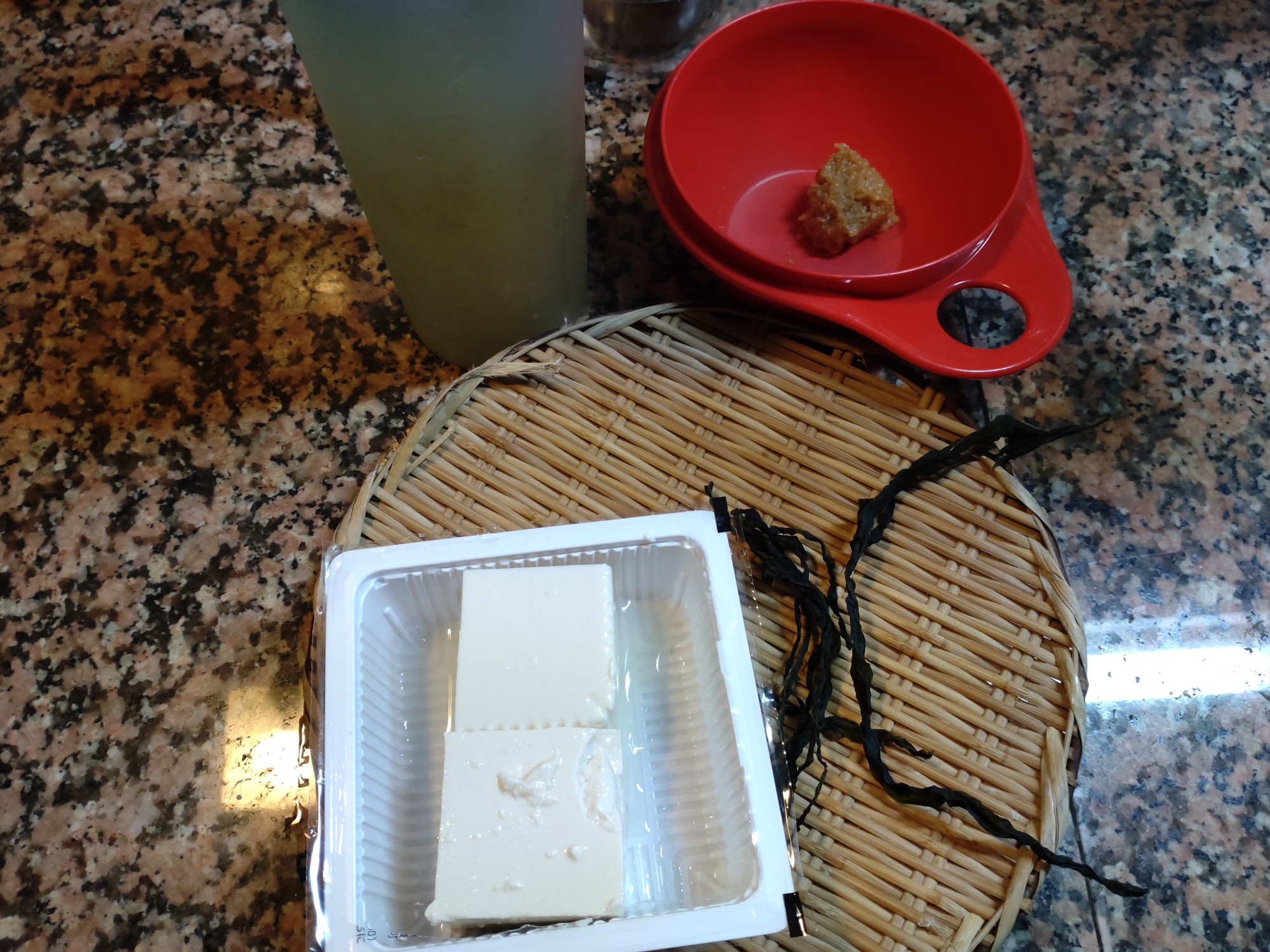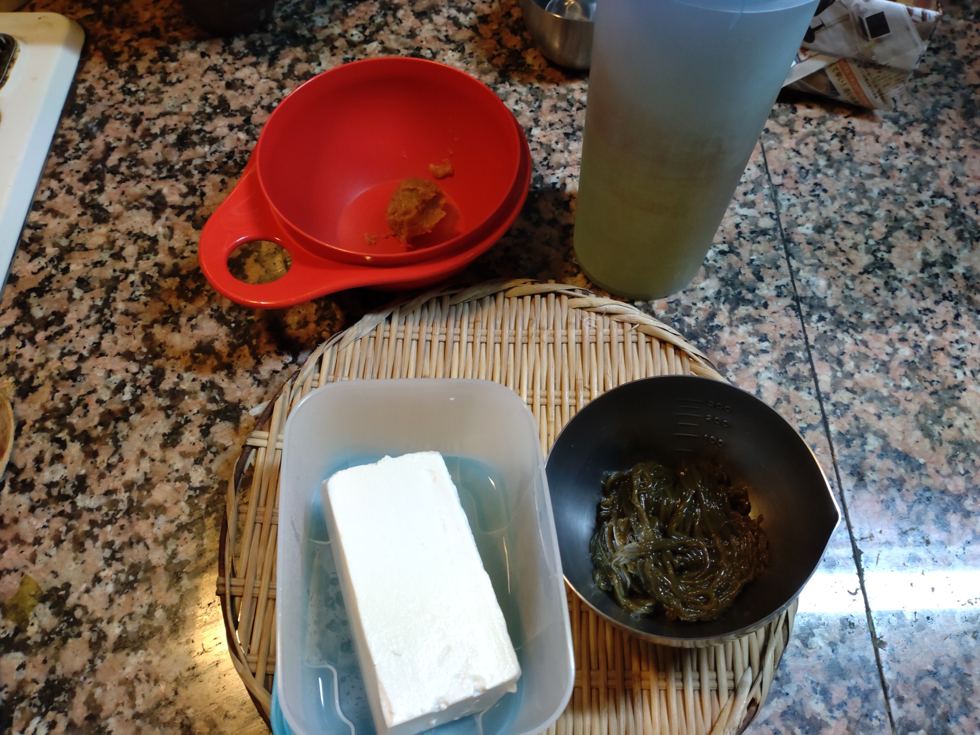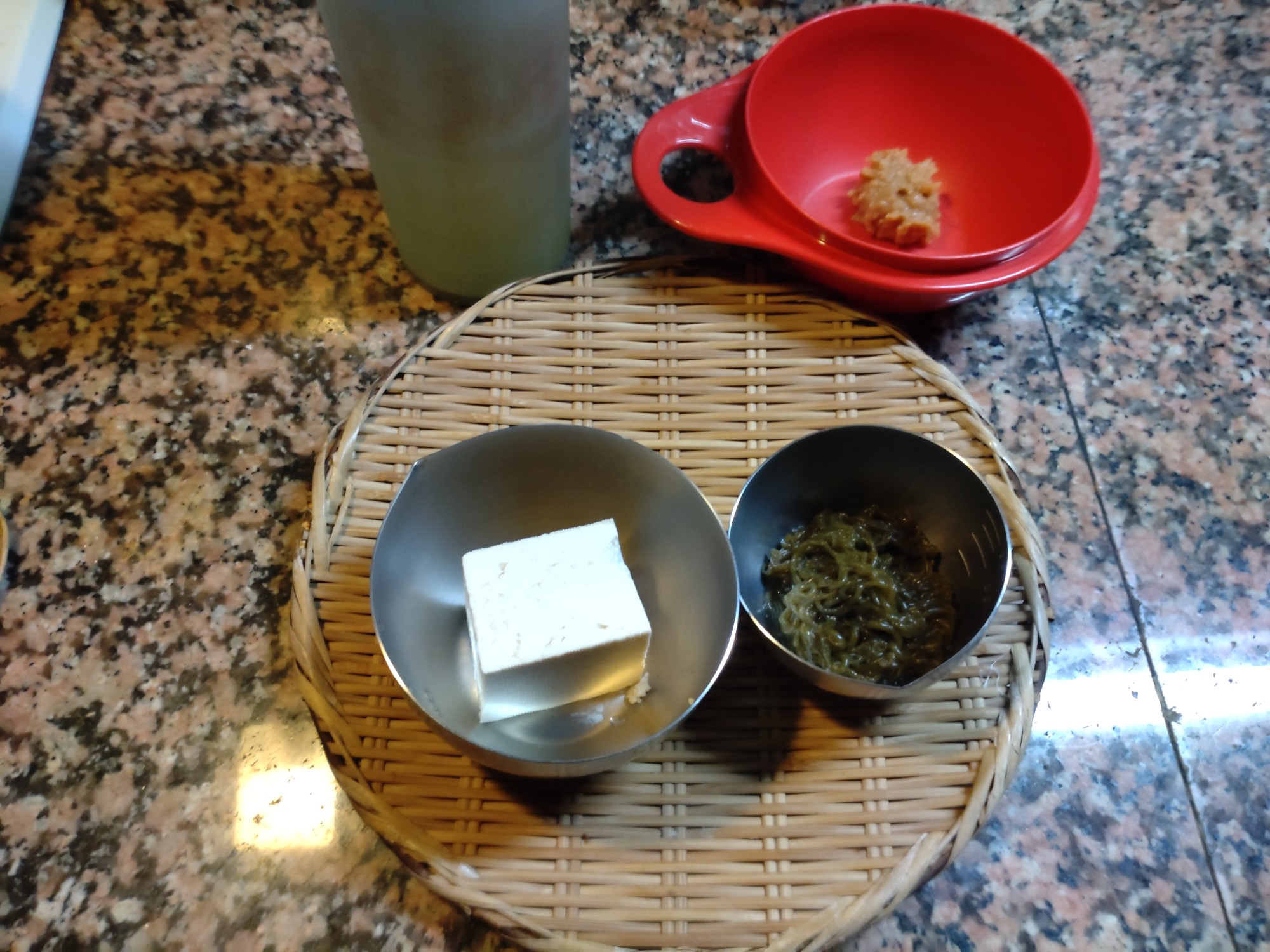 今朝は、木綿豆腐、もずくの味噌汁です。