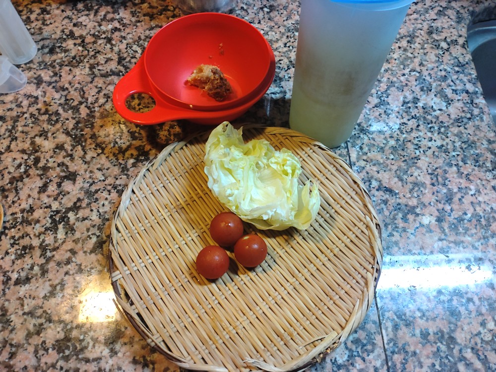 今朝は、プチトマト、レタスの味噌汁です。