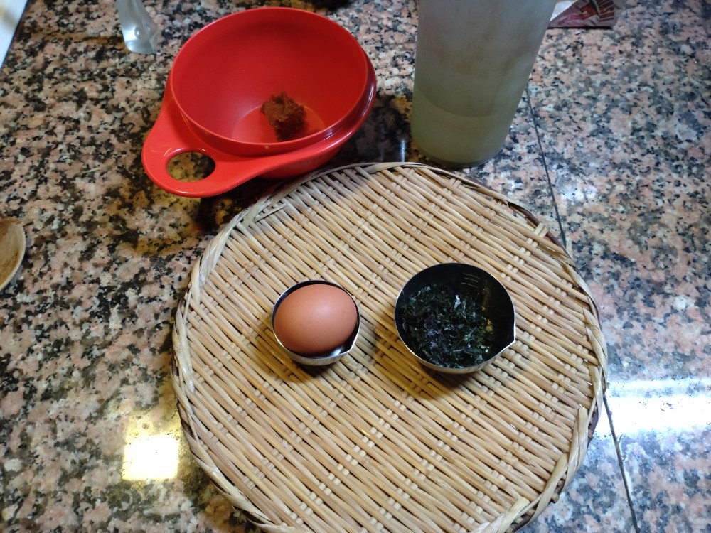 今朝は、鶏卵、あおさ入り海苔の味噌汁です。