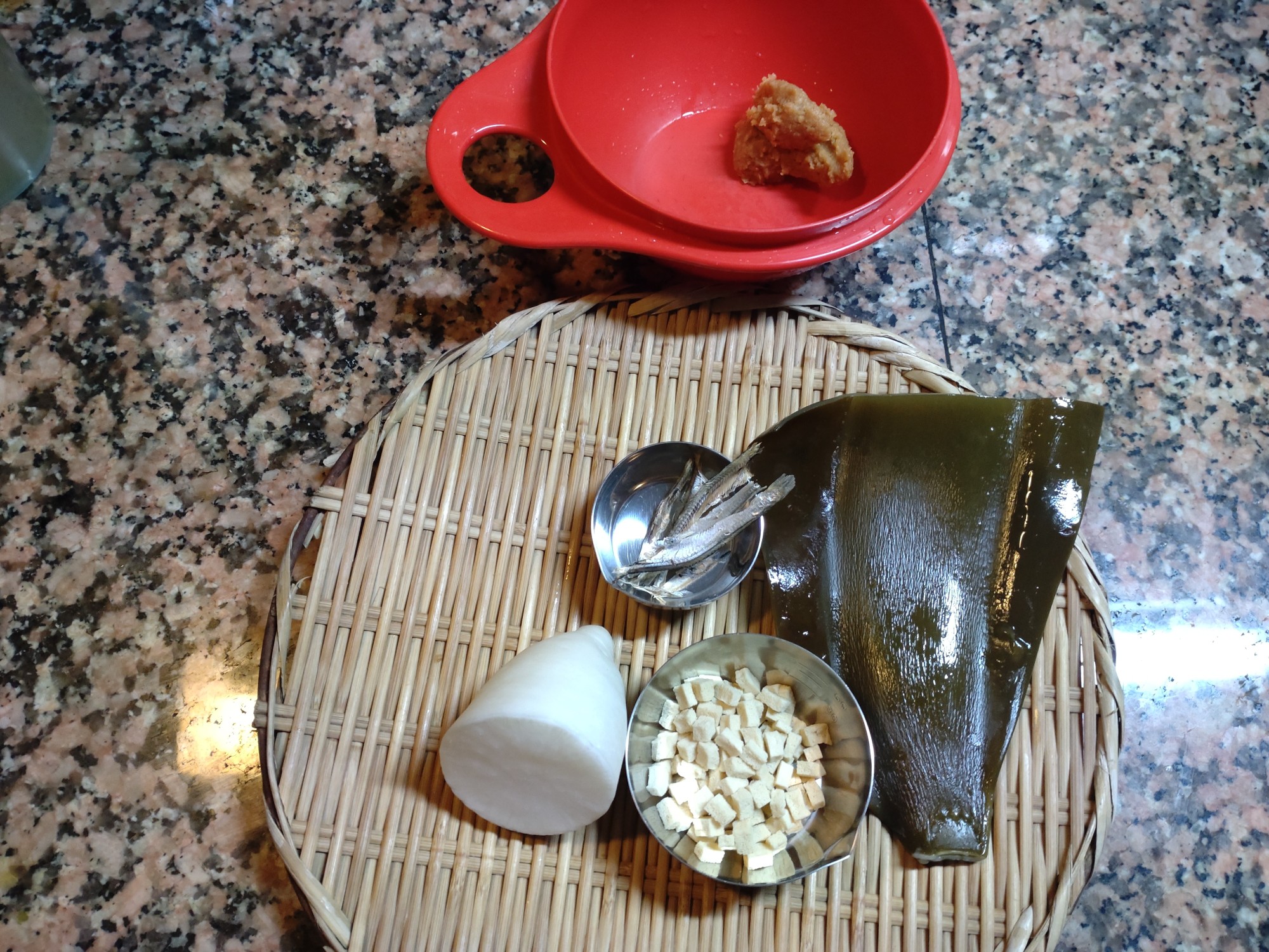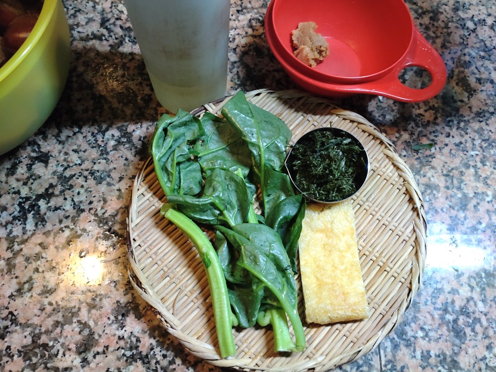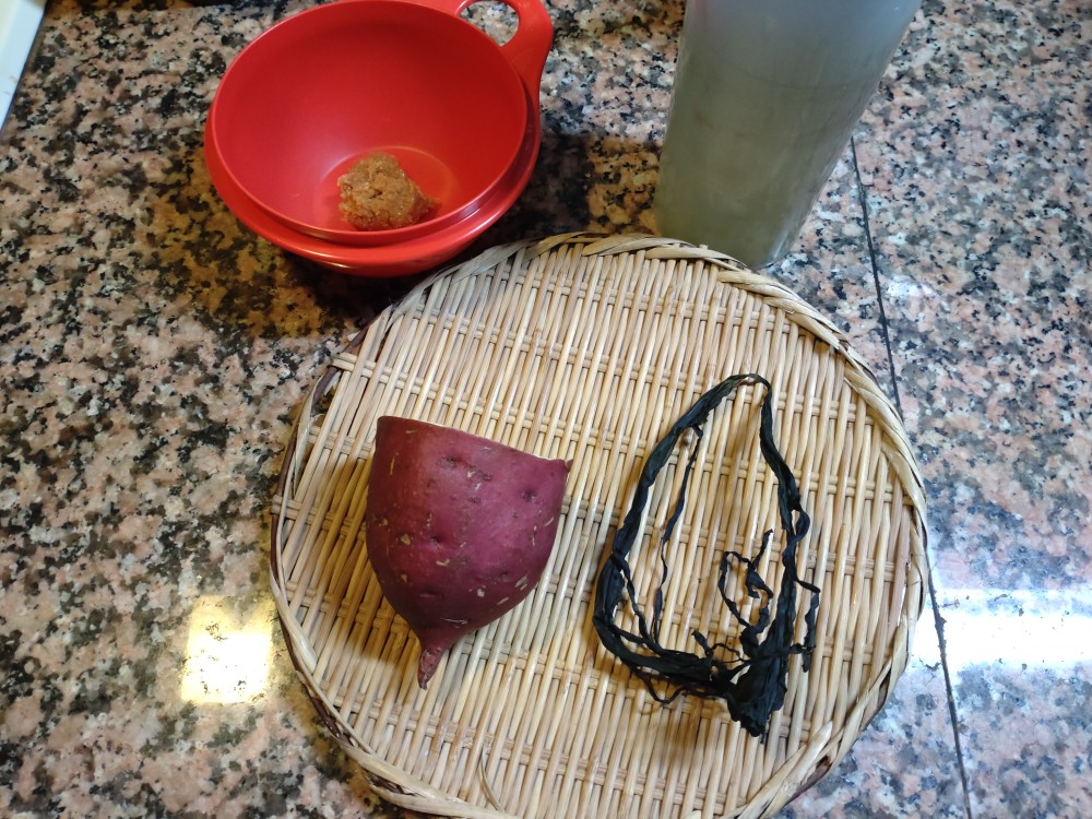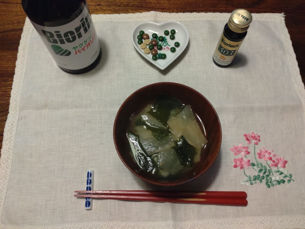 今朝は、無漂白干瓢、わかめの味噌汁です。