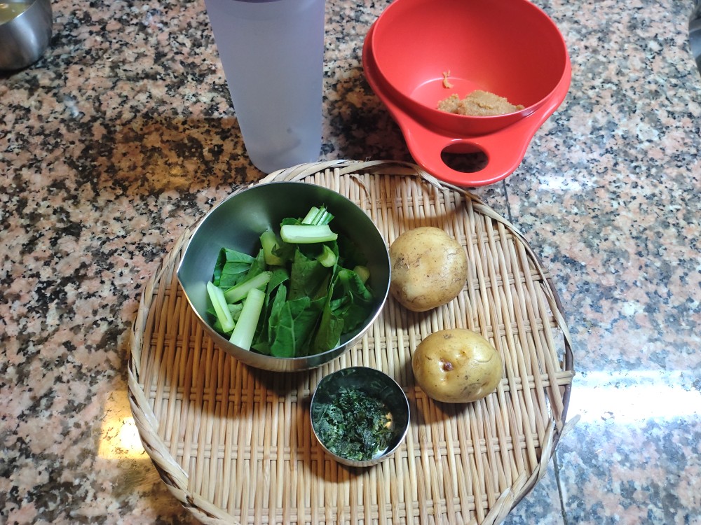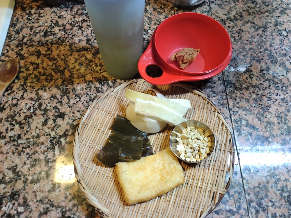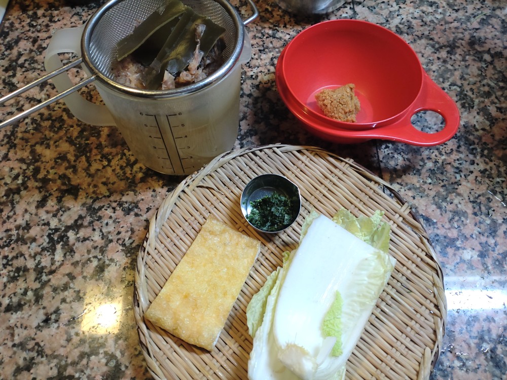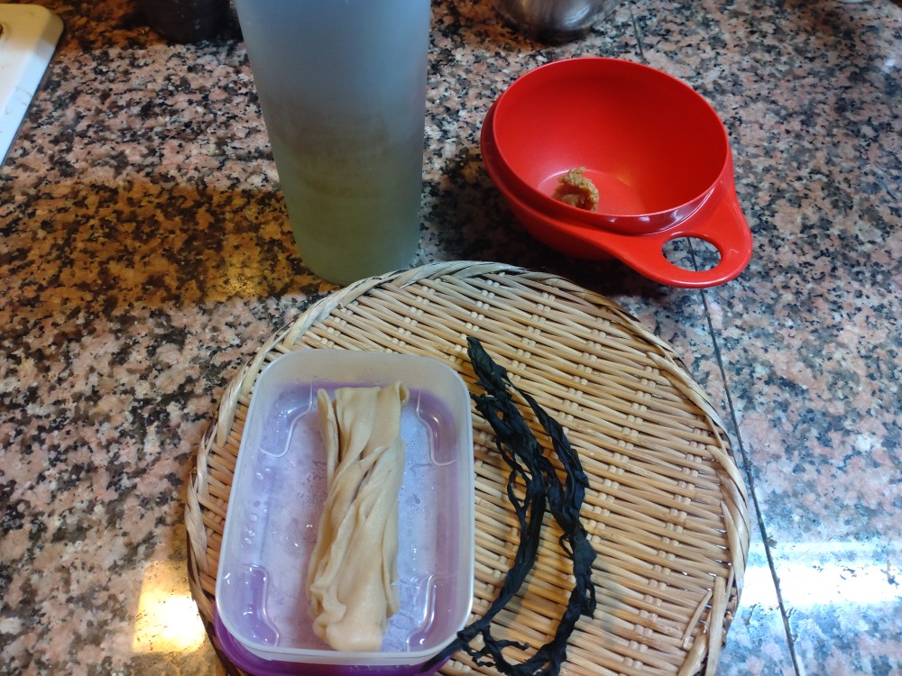 今朝は、無漂白干瓢、わかめの味噌汁です。