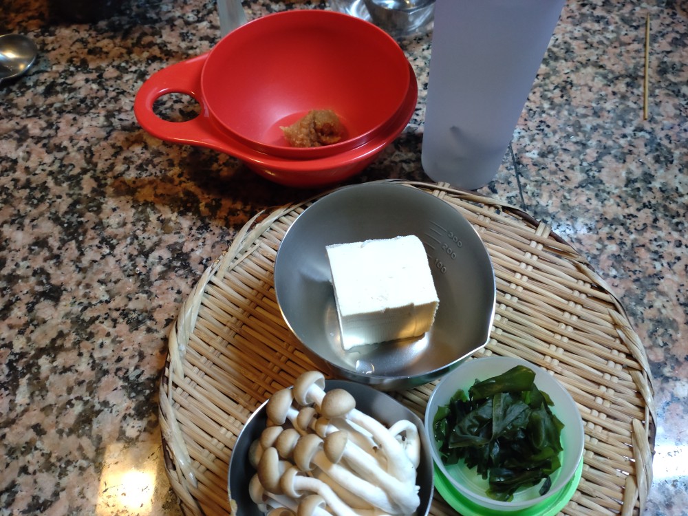 今朝は、しめじ、木綿豆腐、わかめの味噌汁です。