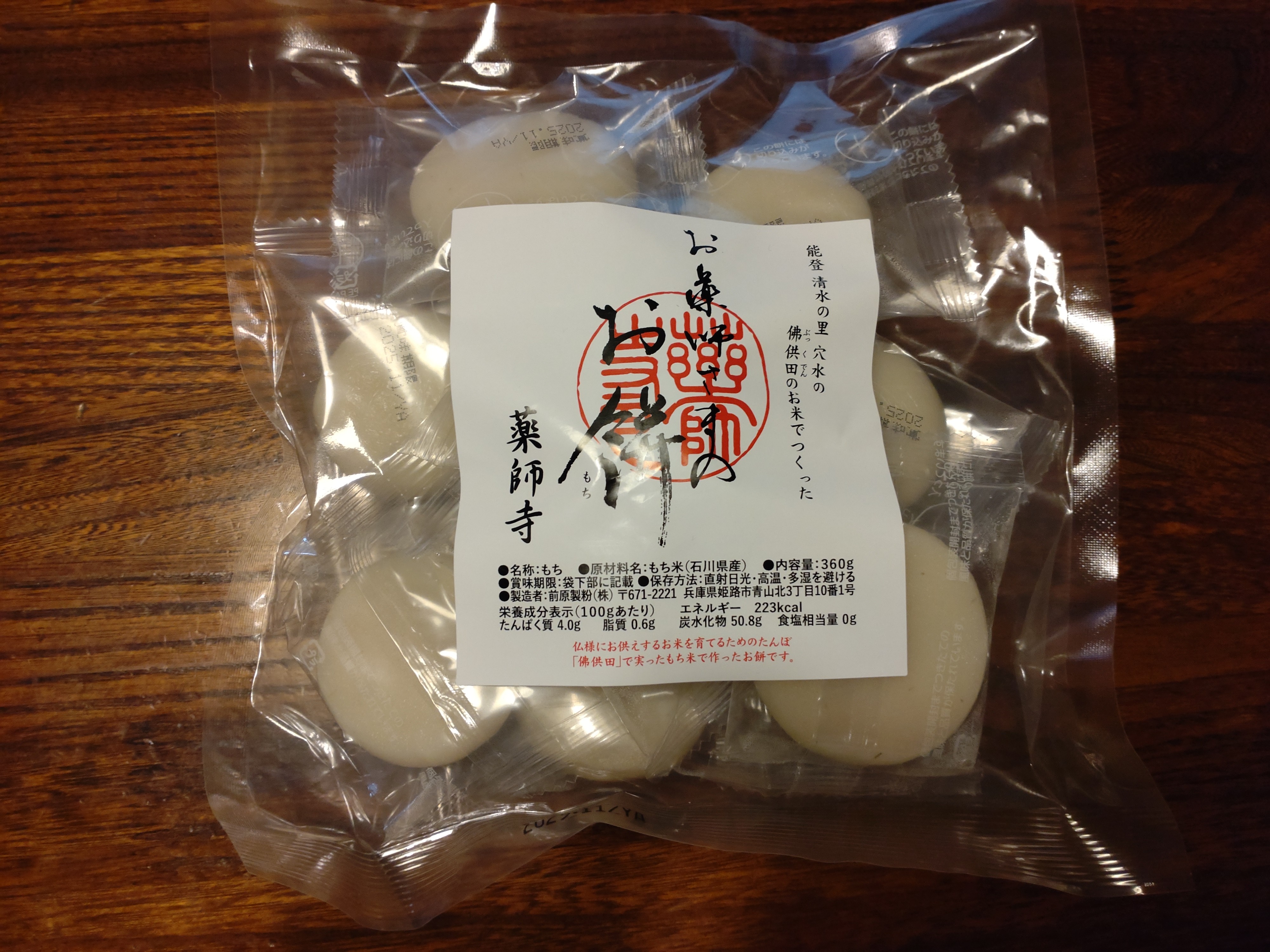 一月四日に薬師寺に写経に行った折に買ったお餅です。
